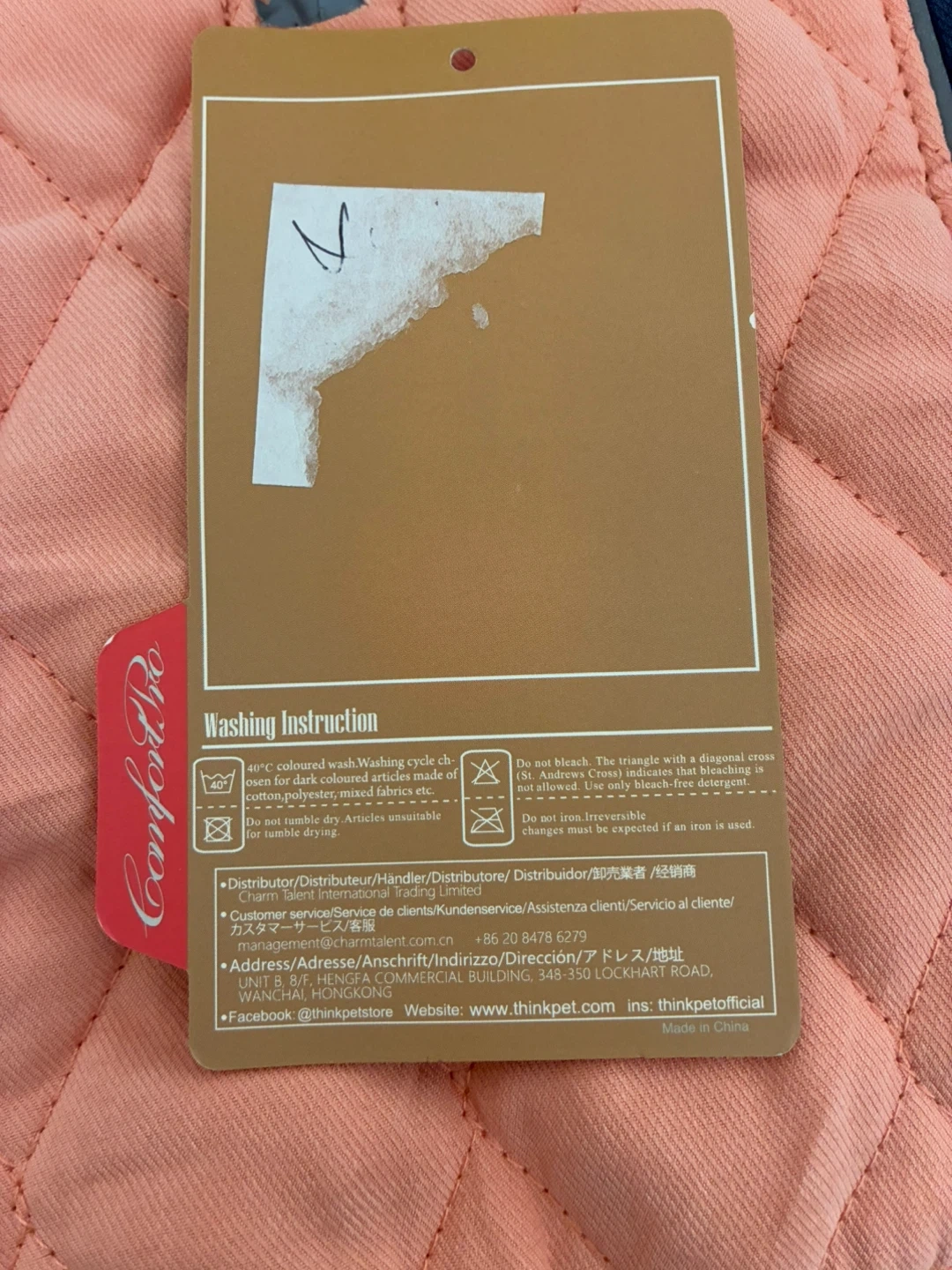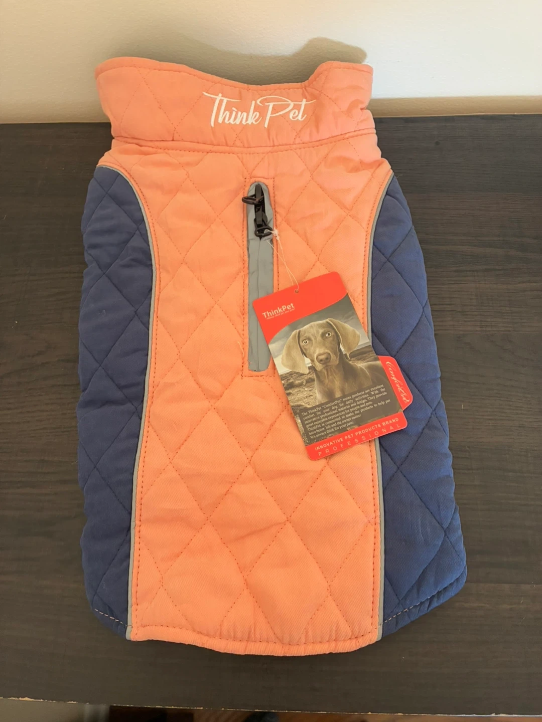 This is a ThinkPet ComfortPro series dog coat. It's designed for daily activities with innovative professional material and design. The coat is a mix of peach and blue. It's in great condition and ready for your furry friend!