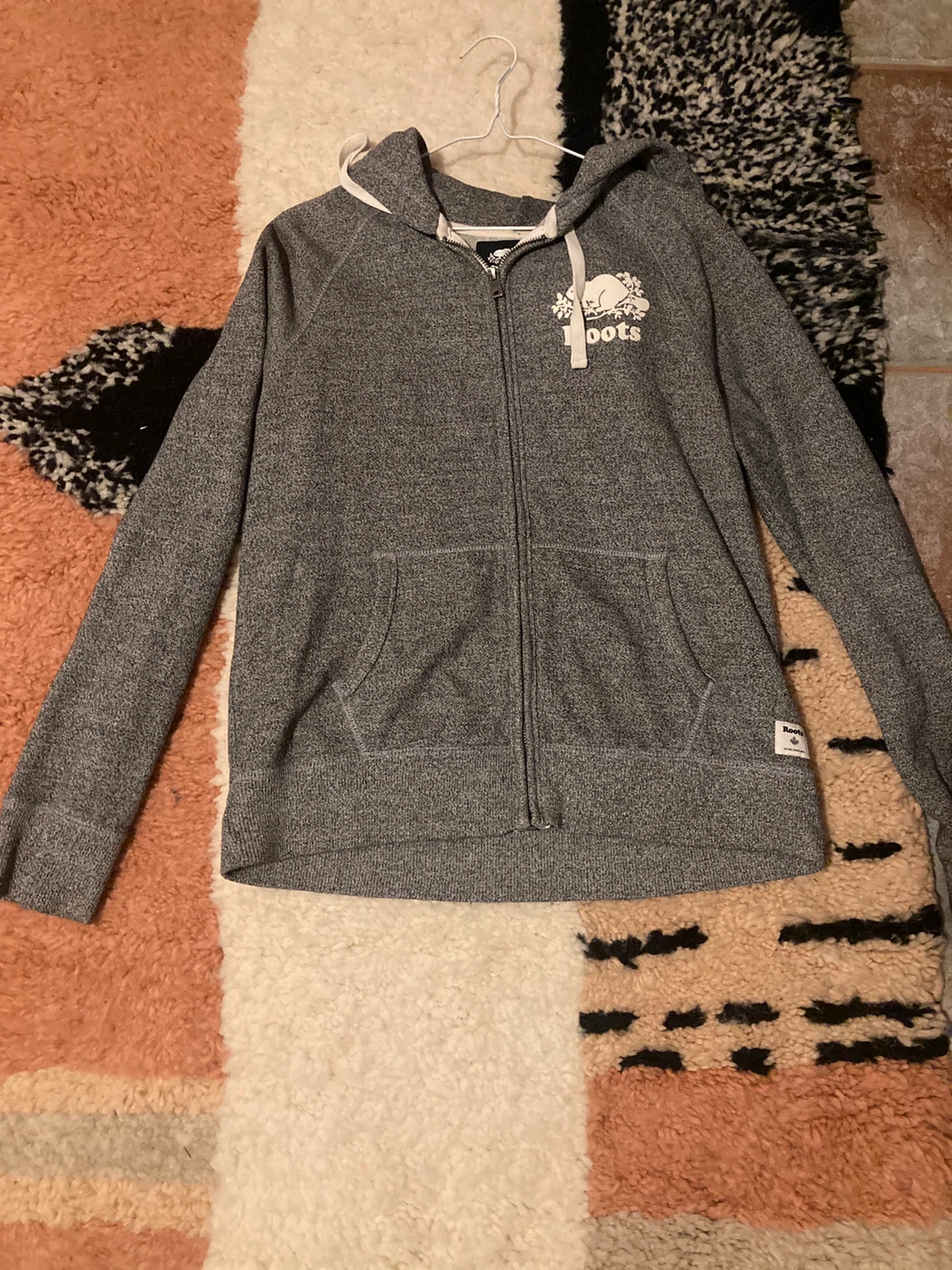 Roots full zip hoodie in a heather grey colour! It's in great condition and super comfy for those chilly days. Perfect for layering or just lounging around the house.