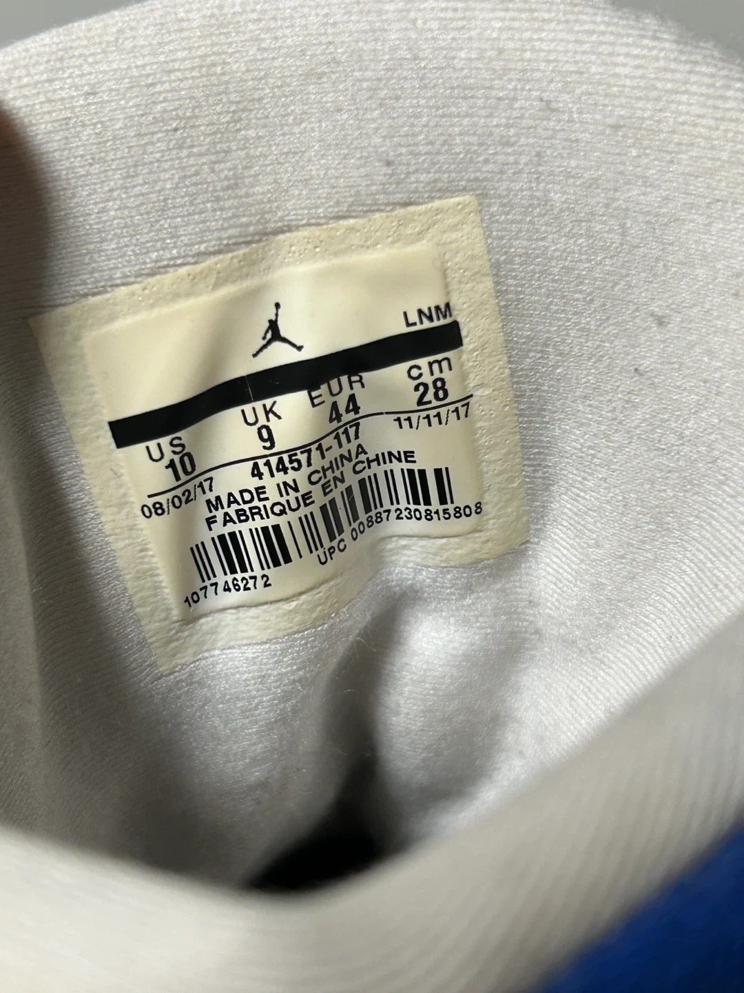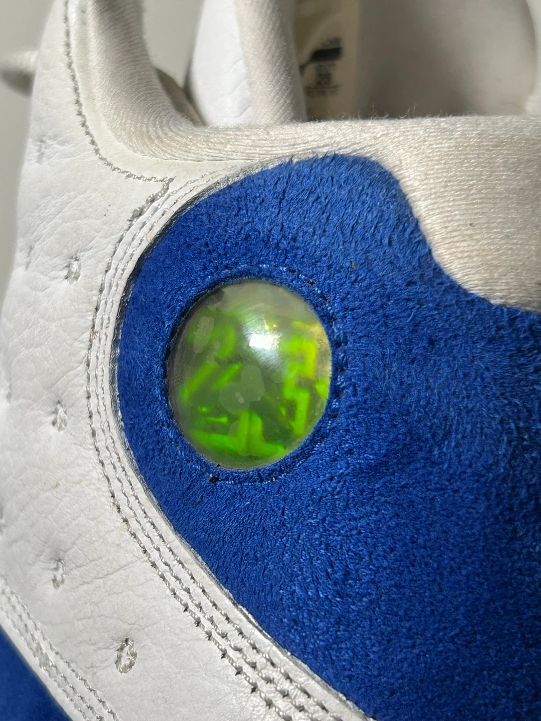 Selling a pair of Jordan 13 Retro sneakers in white and blue! These are in US size 10. They have some signs of wear but still look great!