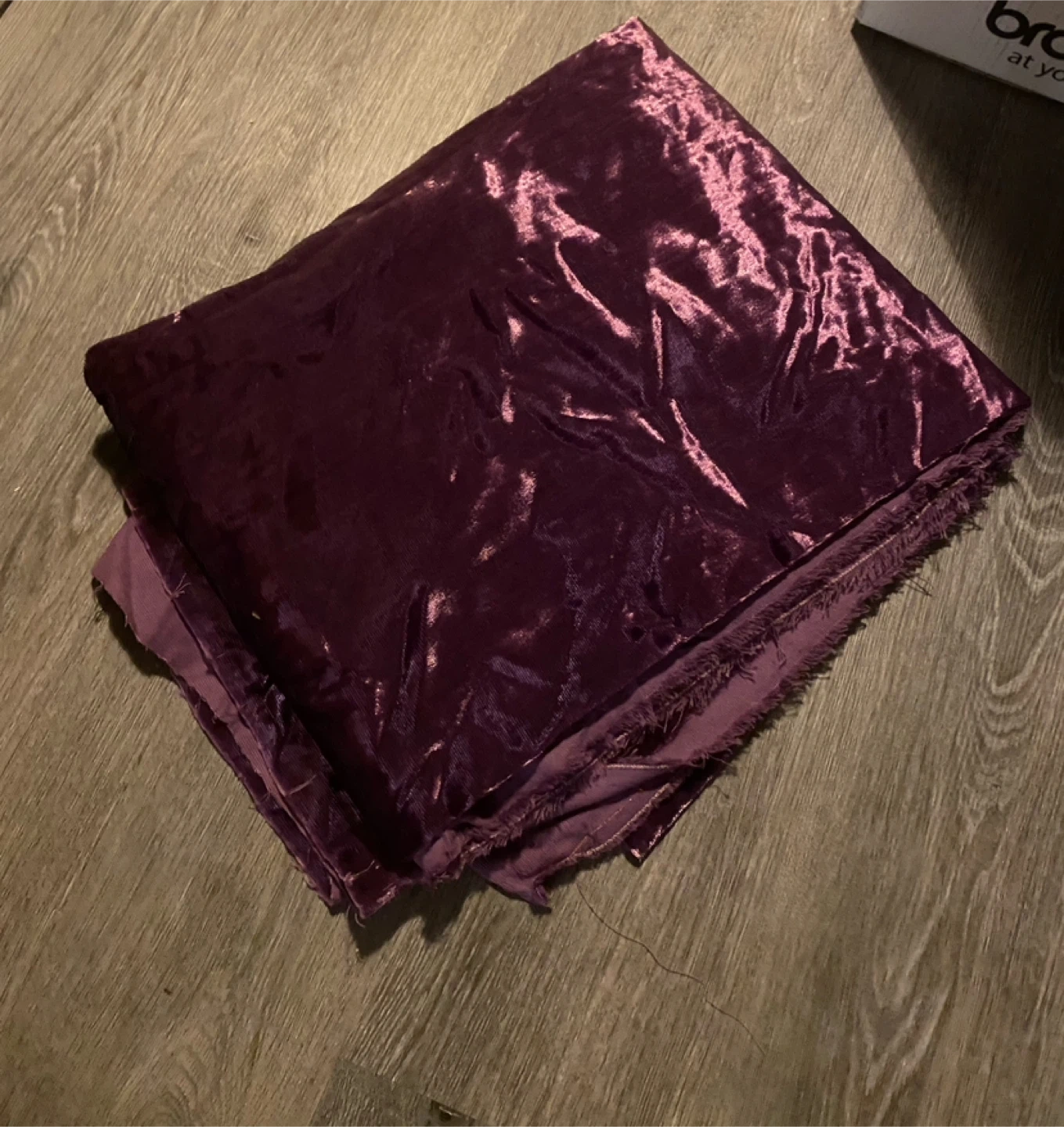 A 6’x4.5’ piece of heavy weight purple crushed velvet fabric. Purchased for a reupholstery project that has since been abandoned. Fabric has a nice sheen to it and can be used for whatever you’d like.