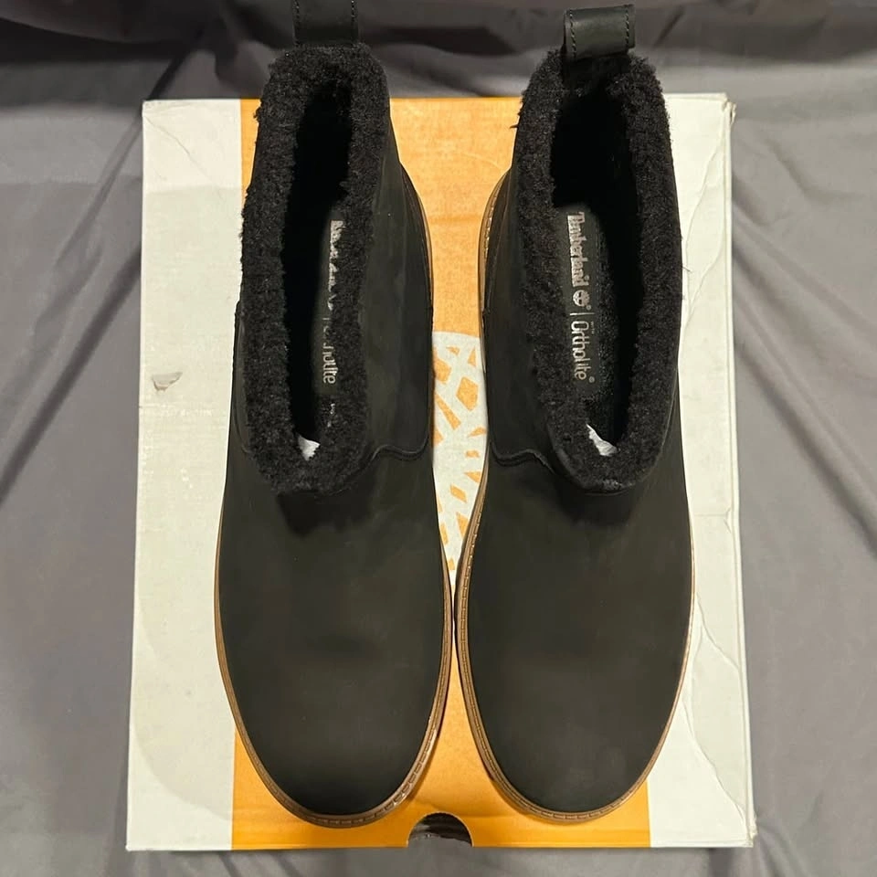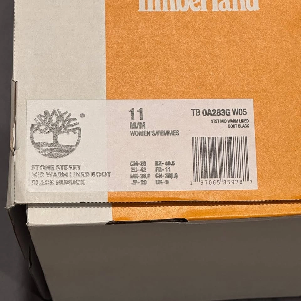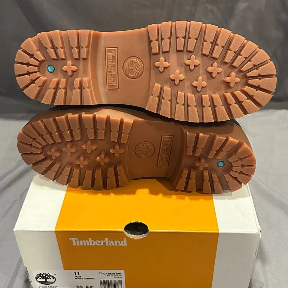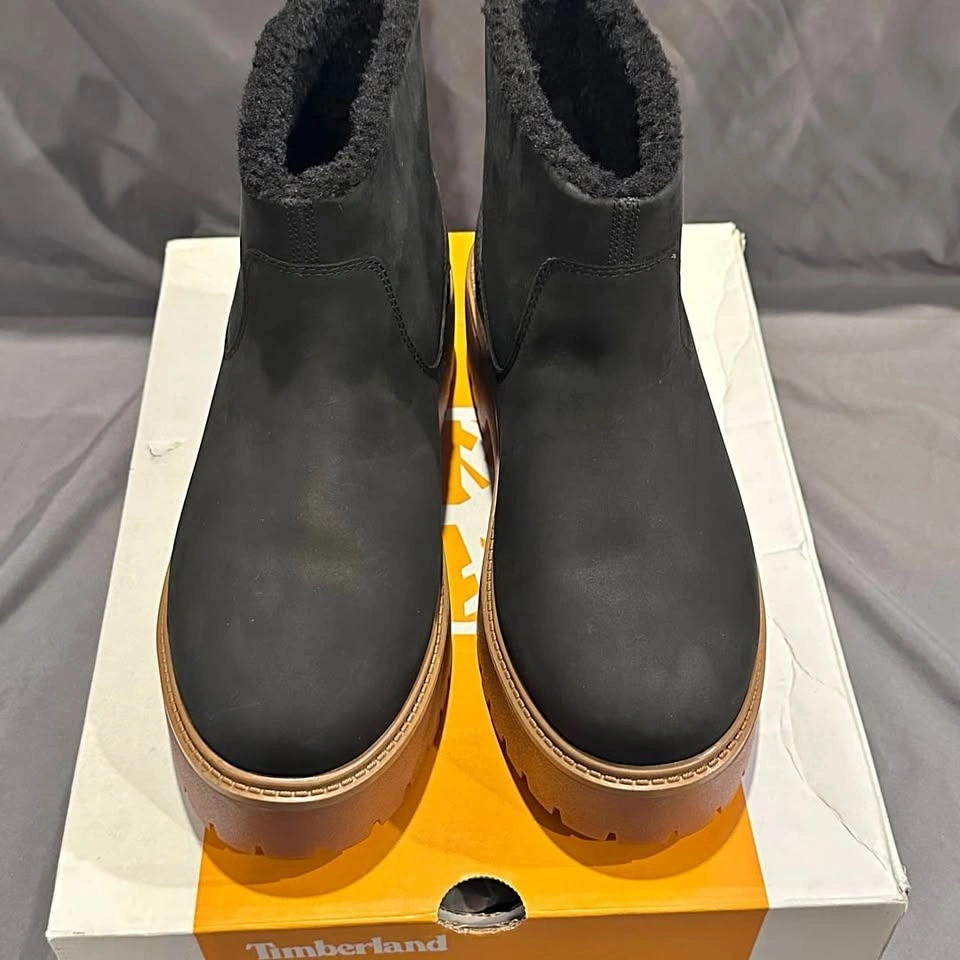 Timberland Stone Street Mid Warm Lined Boots, Women's Size 11. These stylish boots feature a durable black nubuck upper and a cozy warm lining, perfect for colder weather. The mid-cut design provides ample support, while the chunky lug sole offers excellent traction. Brand new in box, never worn. Ideal for casual wear or light outdoor activities.