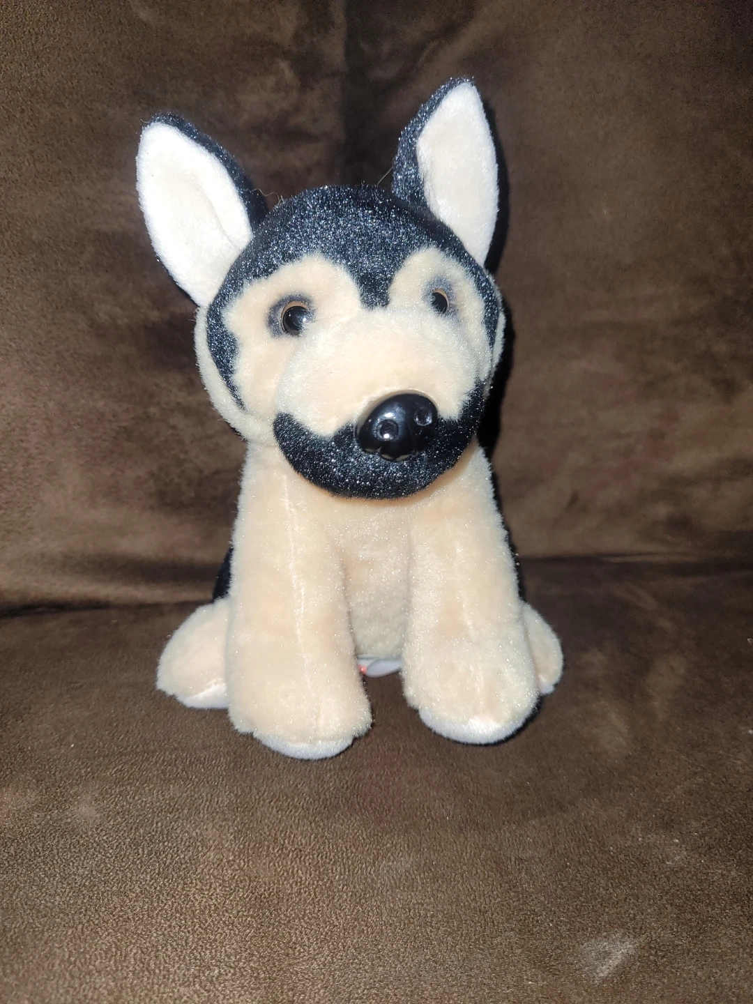 This adorable used German Shepherd plush toy is ready for a new home! With its soft fur and lifelike features, it's perfect for cuddling or as a decorative piece. This plush is in good condition and has been well-cared for.