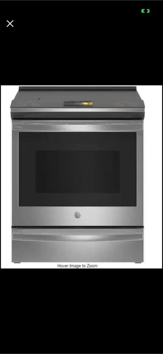 Selling a GE electric range in stainless steel. It's in great condition and ready for a new kitchen! The range features a smooth cooktop and a spacious oven. Dimensions are included in the pictures.