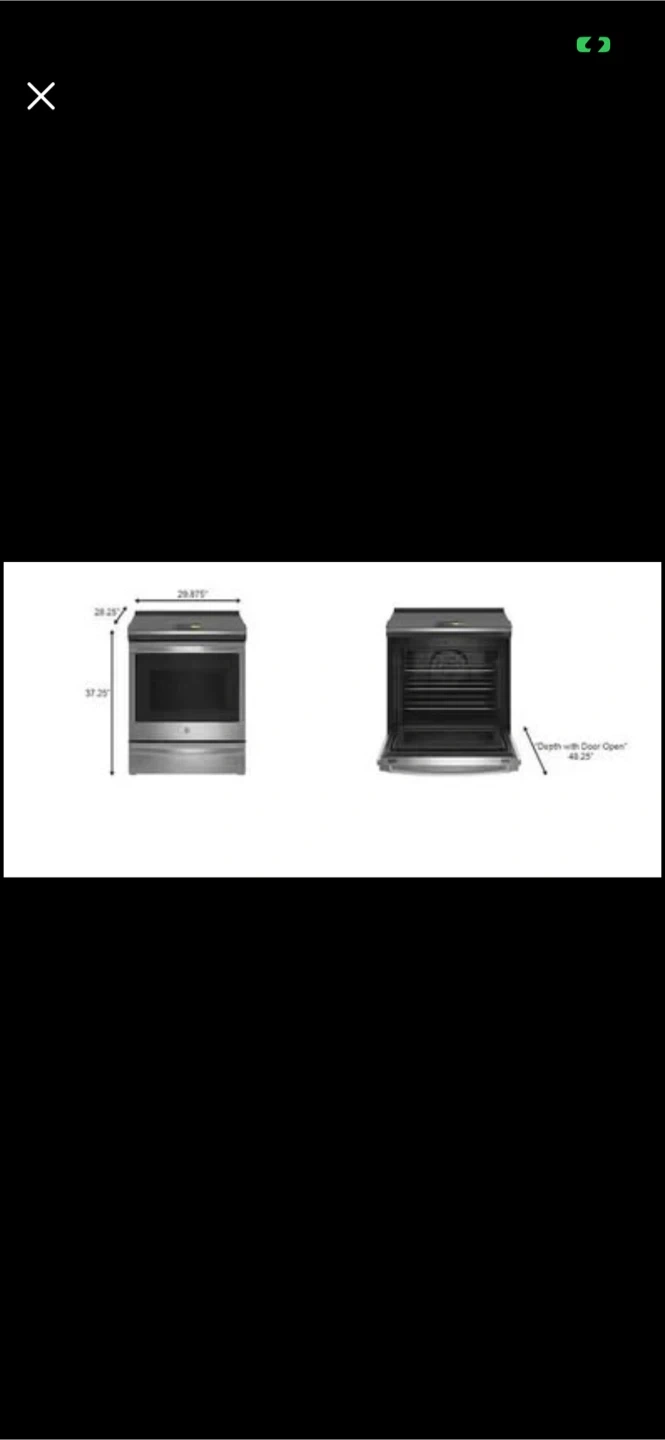 Selling a GE electric range in stainless steel. It's in great condition and ready for a new kitchen! The range features a smooth cooktop and a spacious oven. Dimensions are included in the pictures.
