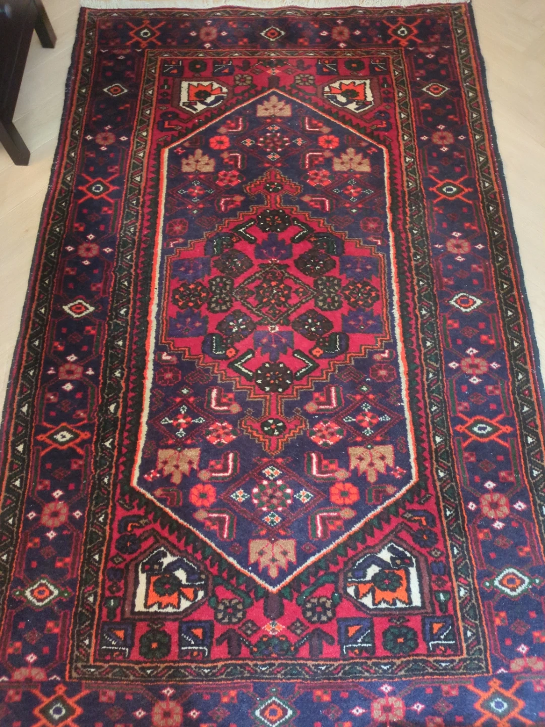 Red & Navy Persian wool Accent Rug