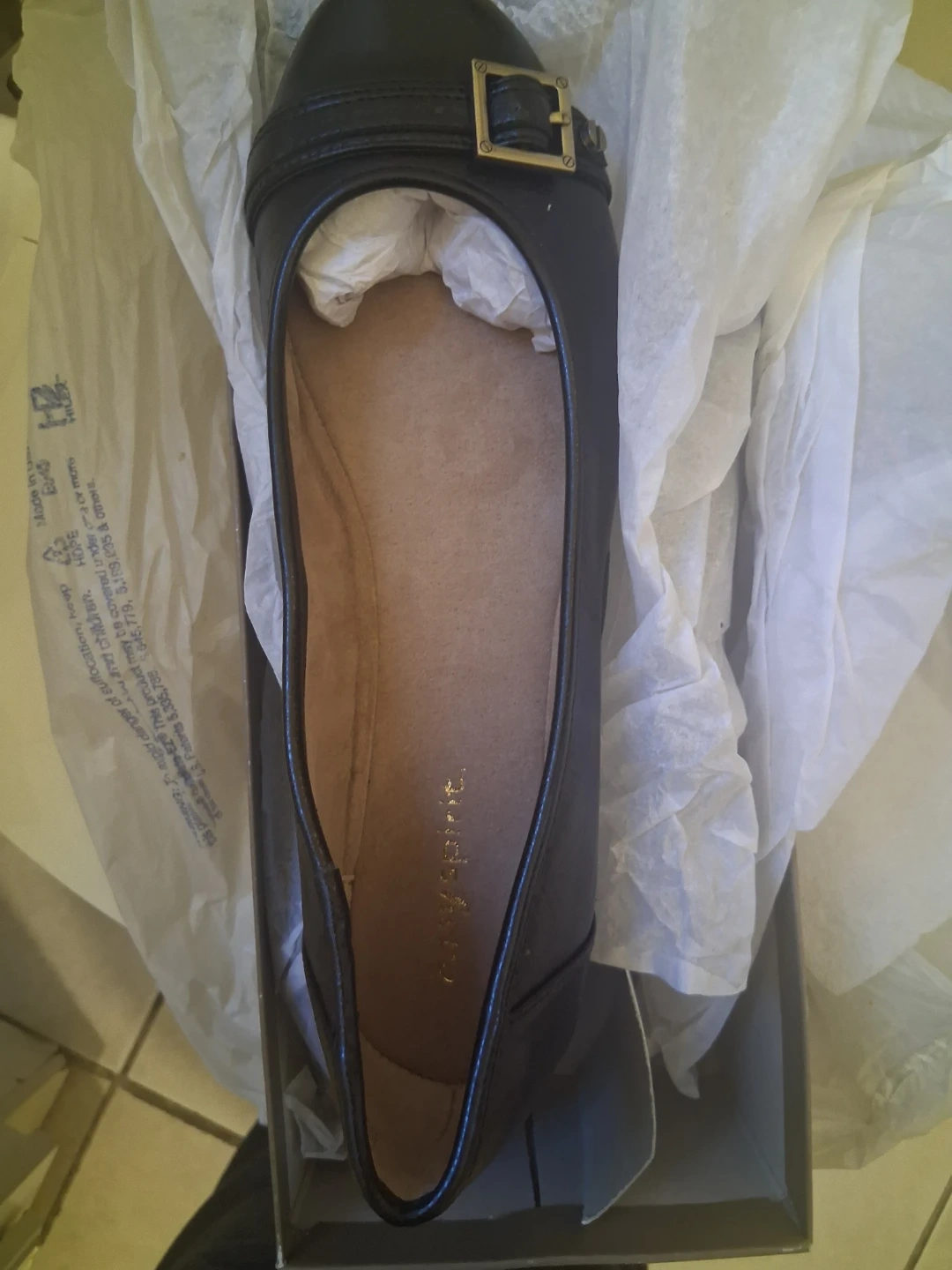 New Easy Spirit ladies 7.5 M size faux black leather flat shoes.
