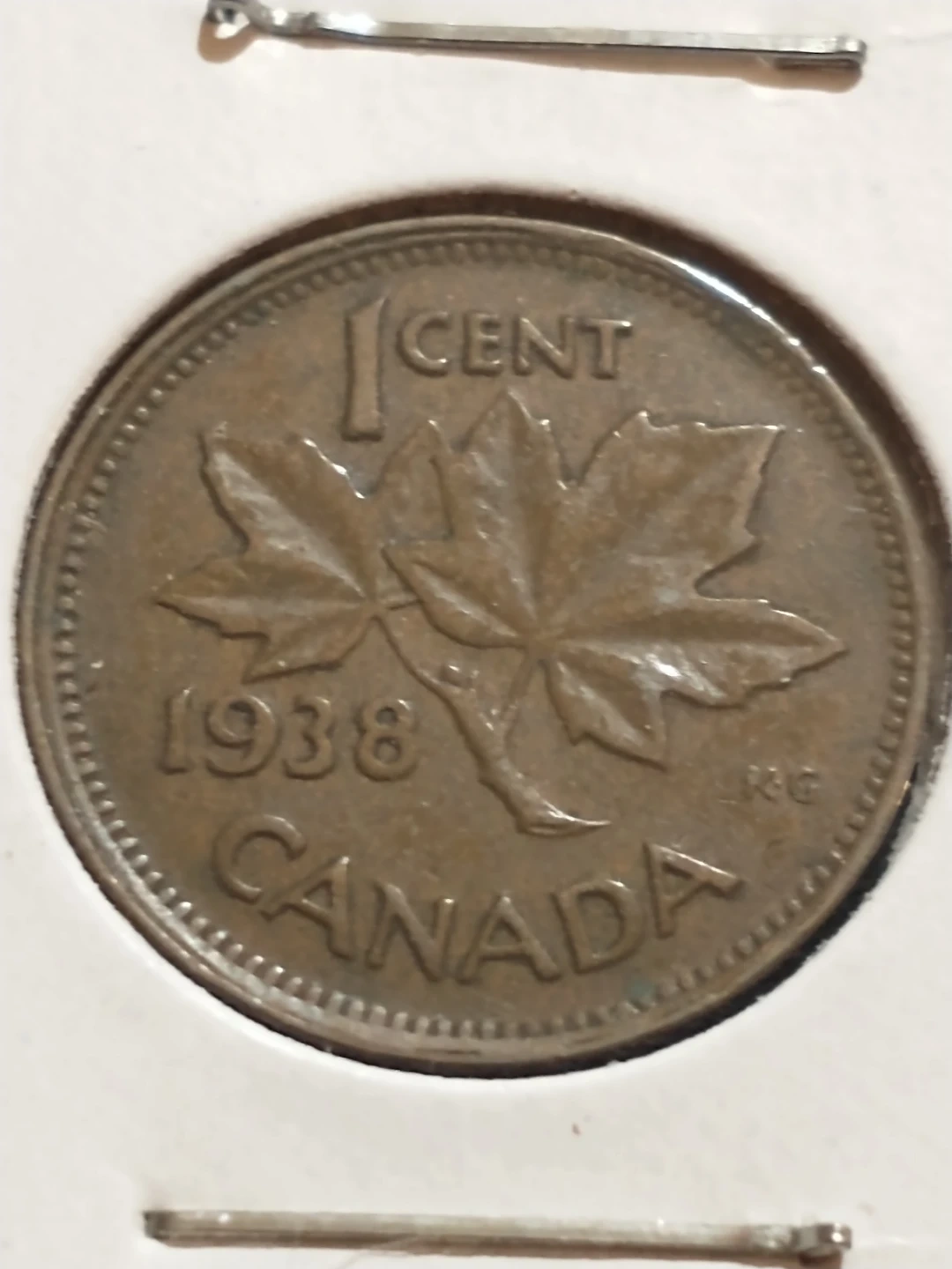 Selling a 1938 Canadian one cent coin. It features King George VI on one side and maple leaves on the other. A piece of Canadian history! #2012-1569 in CB1.