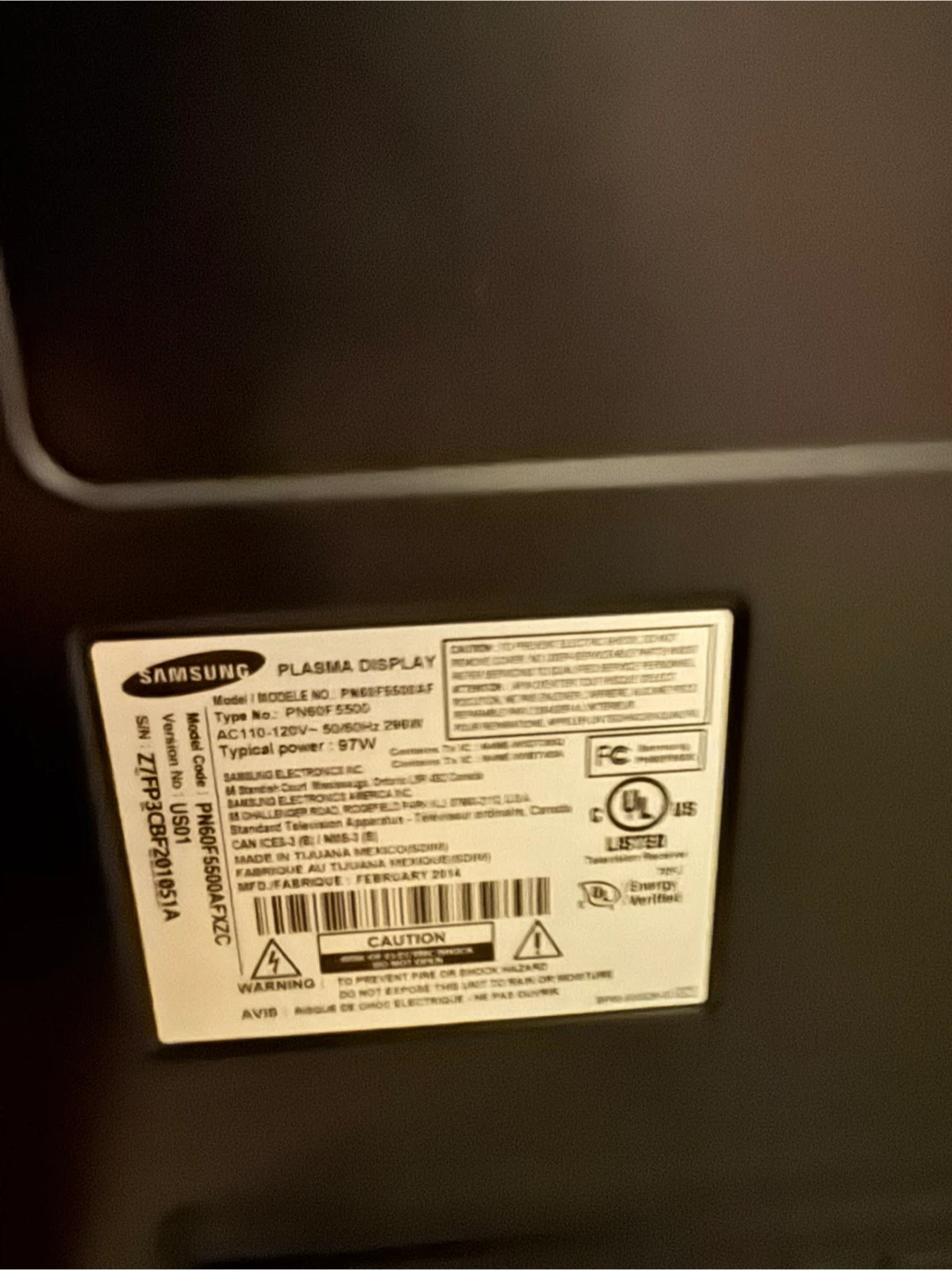Samsung Plasma Display 65 inch TV