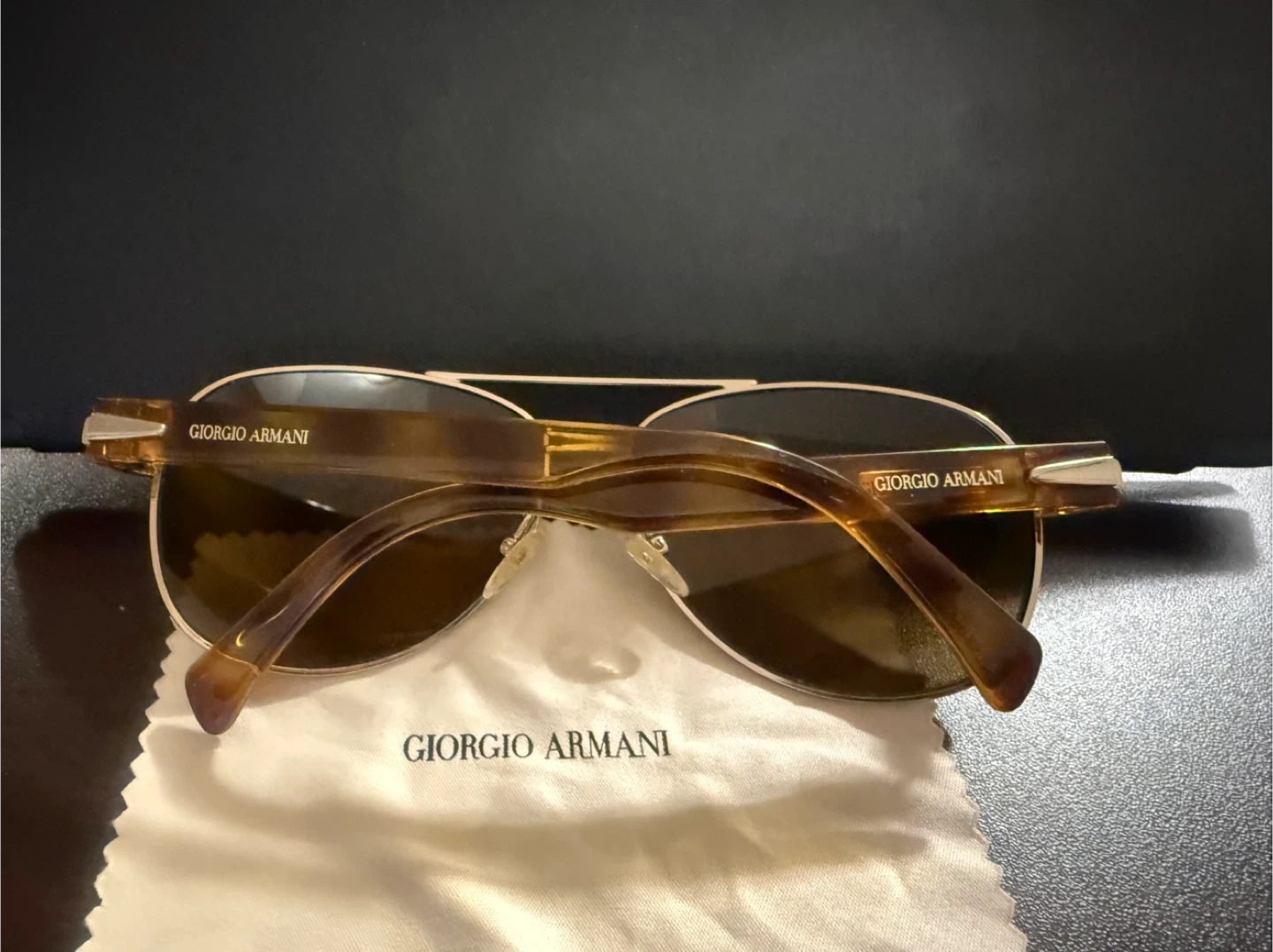 Selling a pair of Giorgio Armani aviator sunglasses. They come with their original case and a cleaning cloth. A stylish accessory to complete your look!