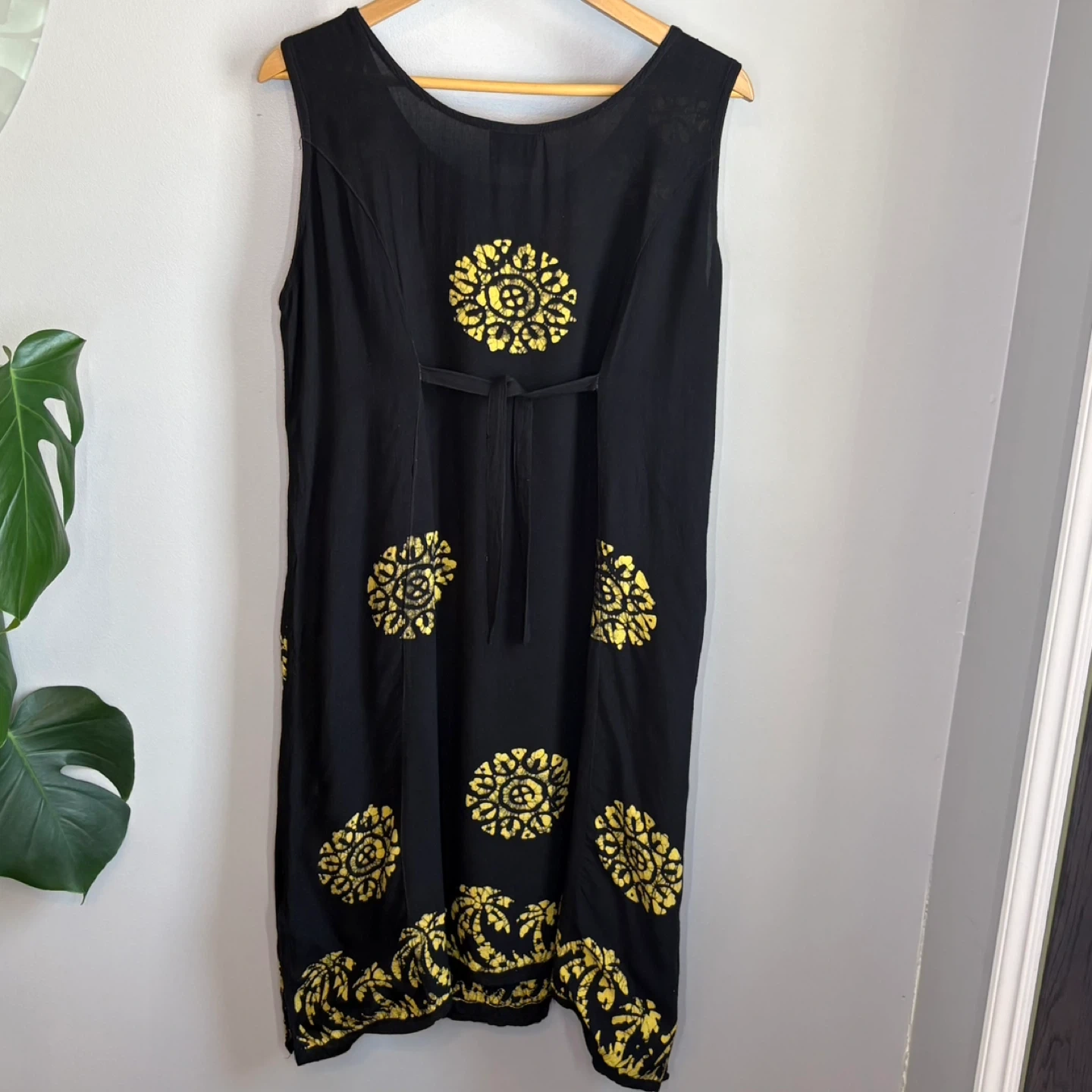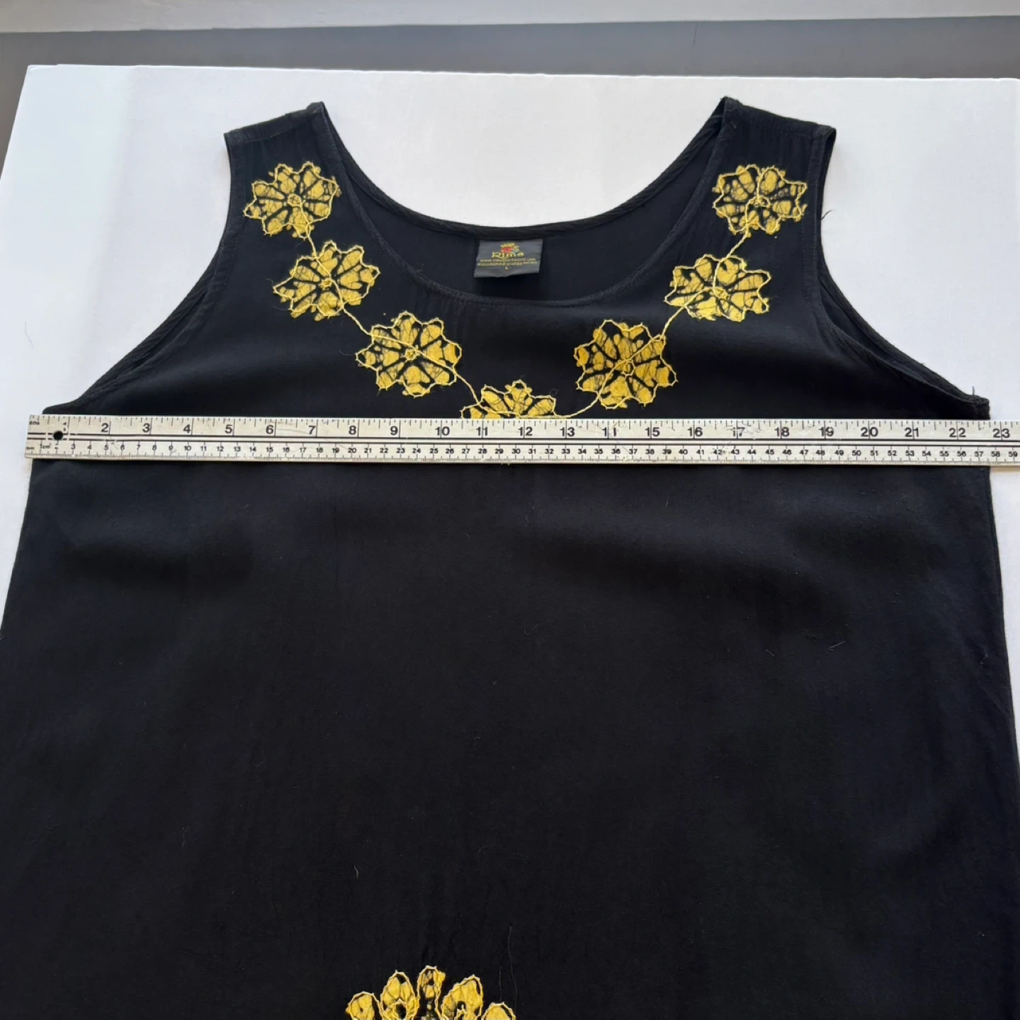 Rima Black Tropical Batik Printed Embroidered Shift Dress Size L
