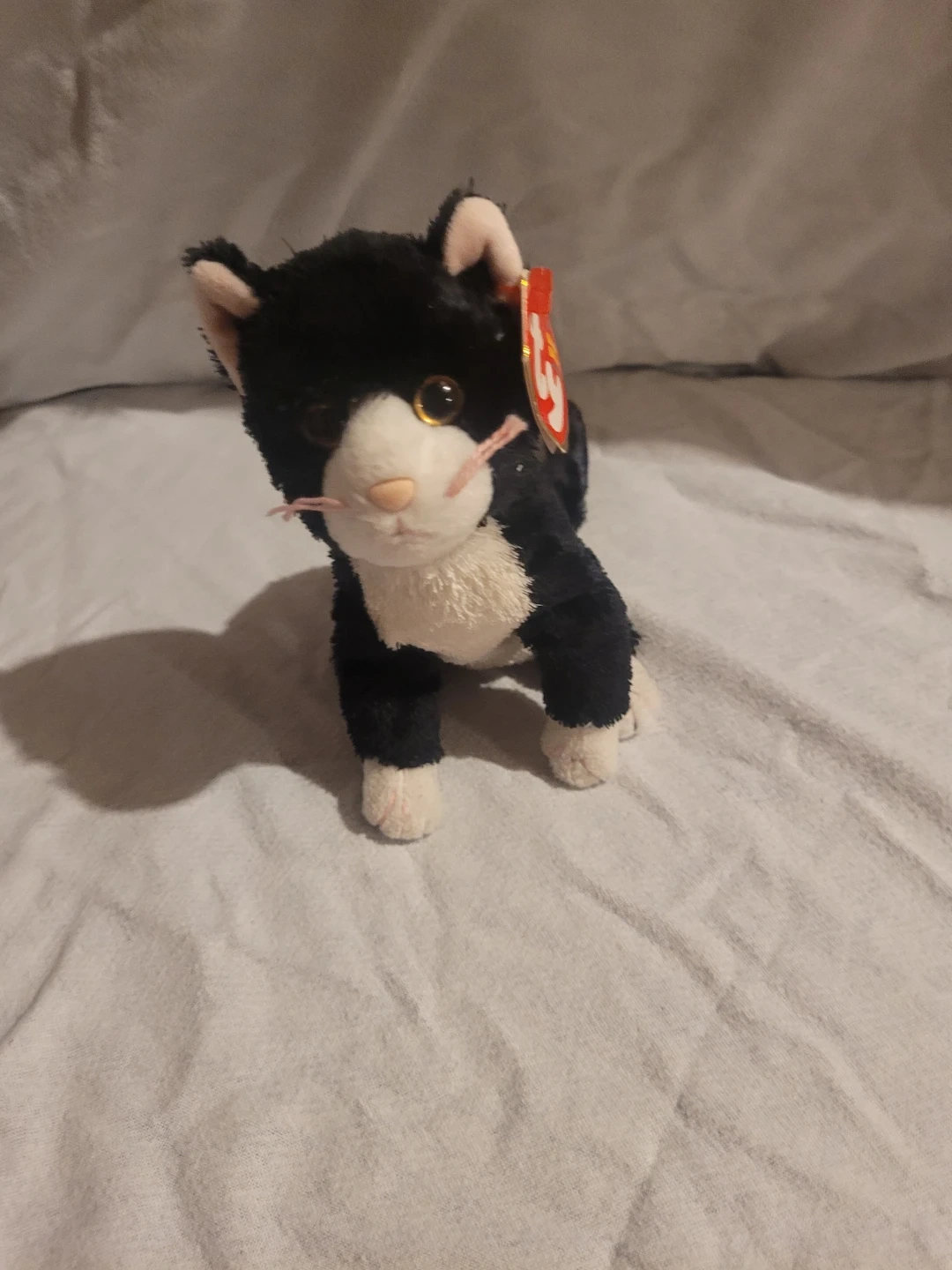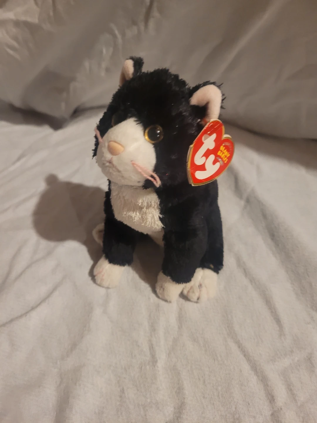 This is a used Ty Beanie Baby named Scat the cat. It is in good condition. A delightful treasure for collectors and cat lovers alike! A plush companion ready for new adventures! Isn't it amazing how a little plush can bring so much joy.