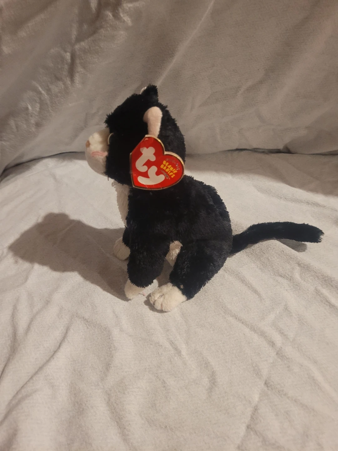 This is a used Ty Beanie Baby named Scat the cat. It is in good condition. A delightful treasure for collectors and cat lovers alike! A plush companion ready for new adventures! Isn't it amazing how a little plush can bring so much joy.