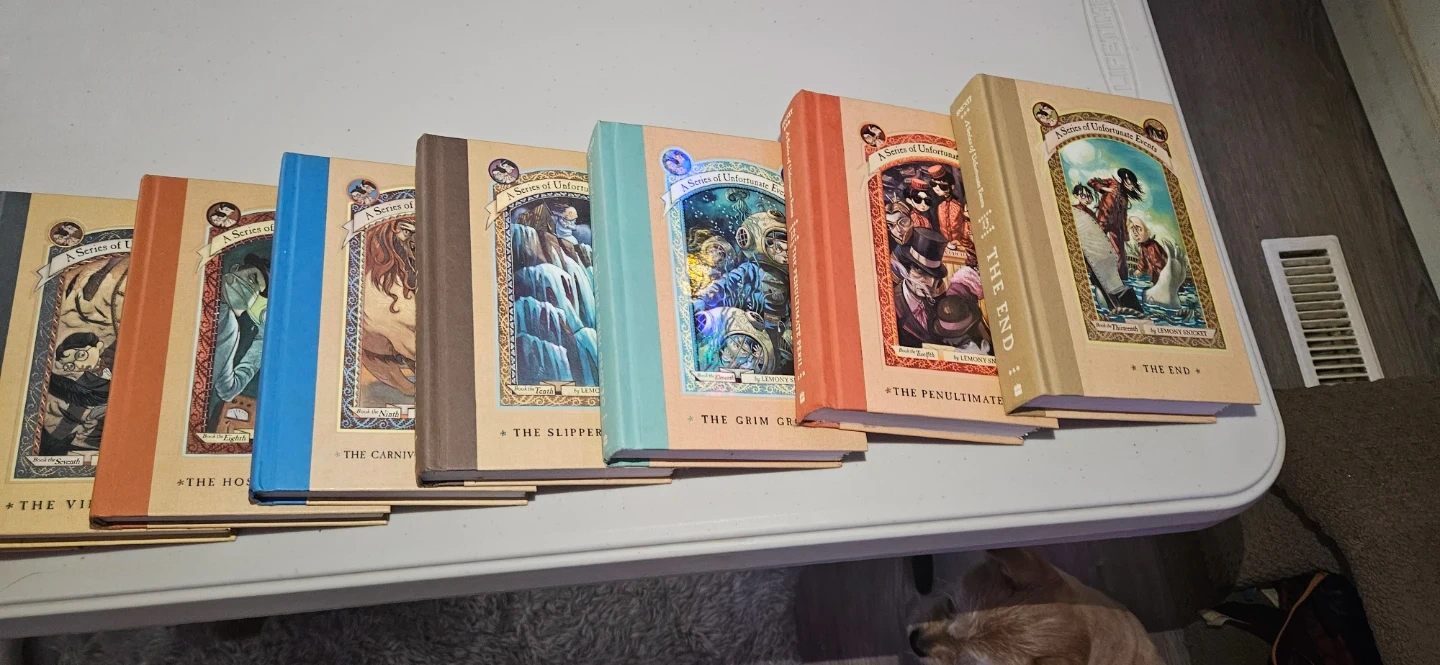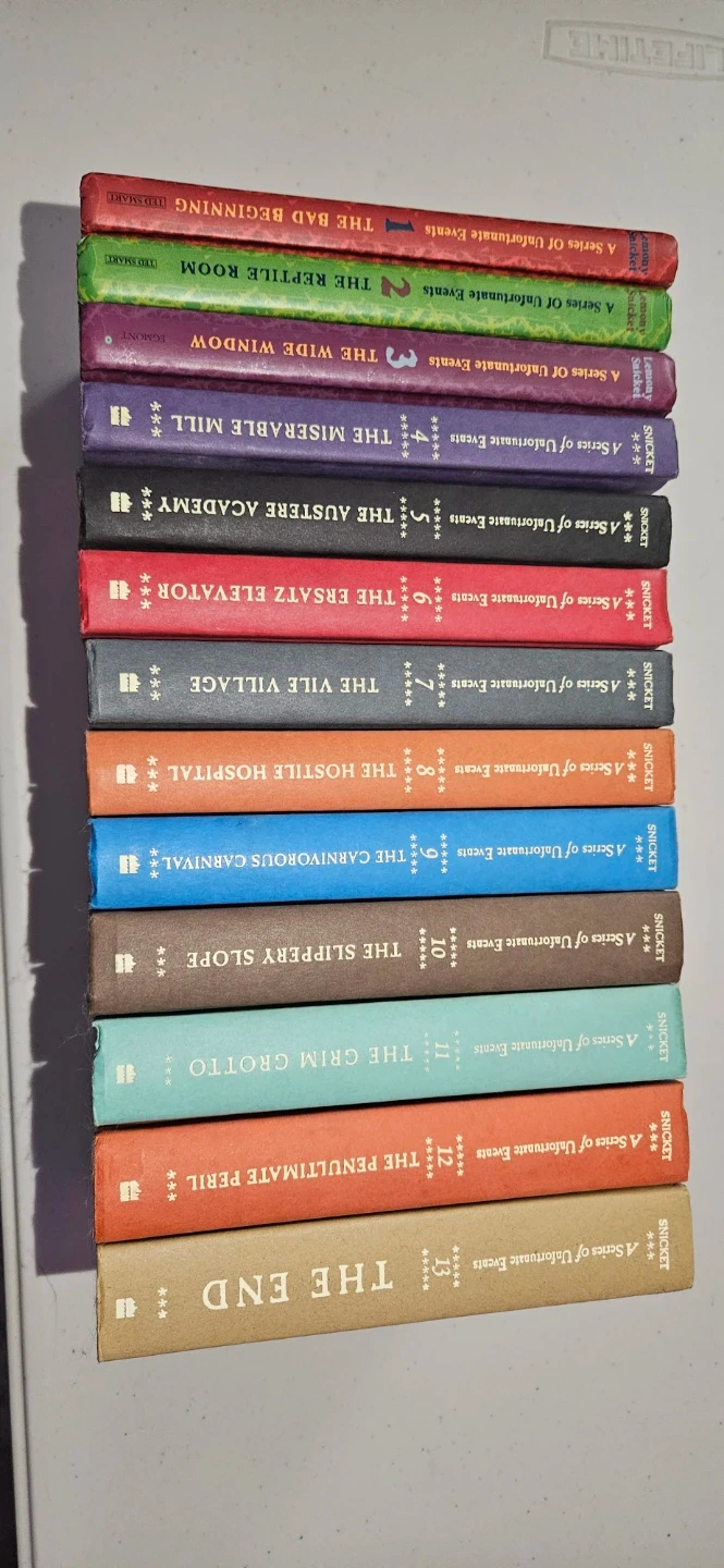 Selling all 13 books from A Series of Unfortunate Events by Lemony Snicket! They're a great read for kids and adults alike. Get ready for a wild and quirky adventure!