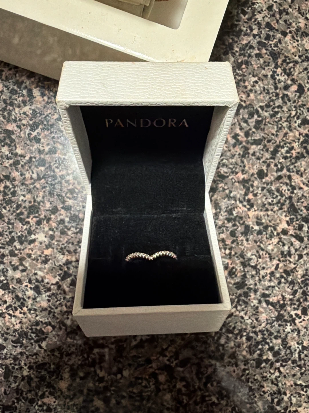 Selling a beautiful Pandora Sparkling Wishbone Ring! It's in great condition and comes with the original box. This ring features a 14k rose gold-plated unique metal blend. Originally bought for $105