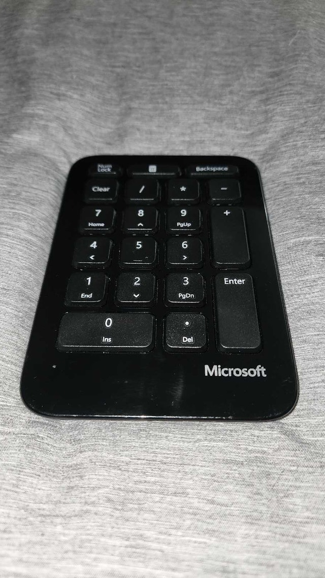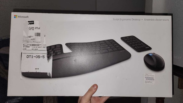 I'm selling a used Microsoft Sculpt Ergonomic Desktop keyboard, mouse, and number pad combo that's designed for comfort and productivity. I cleaned all of the peripherals very well, and I think this is a fair price considering it is a full set keyboard/mouse/numpad. The keyboard features a split keyset design that helps position your wrists and forearms in a relaxed, natural angle, preventing strain. The separate number pad provides flexibility for your workspace, and the ergonomic mouse is designed for maximum comfort. Features include: