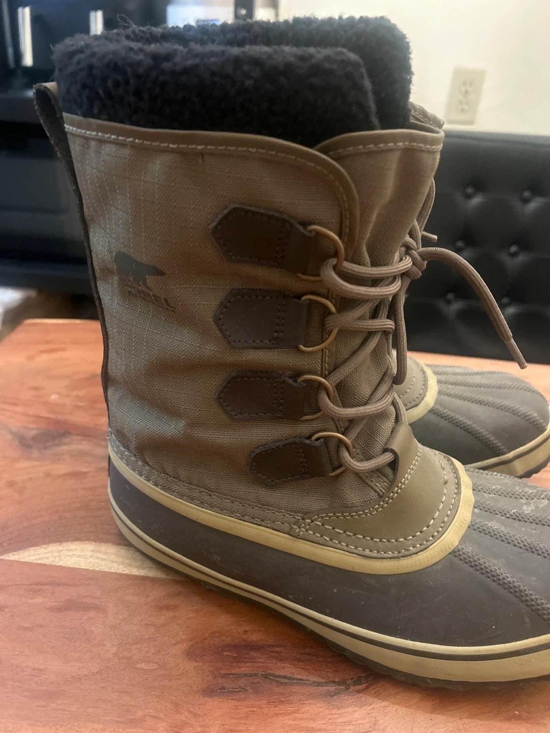 Selling a pair of Sorel men's winter boots, model NM1440-334. They are a size 7 USA ,250cm. These boots are perfect for keeping your feet warm and dry during the winter months!