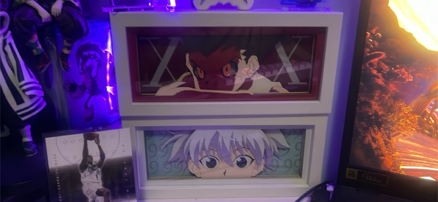 Hunter x Hunter LED light box featuring Gon and Killua. (Note that Gon has a tiny scratch but it isn’t visible when turned on.