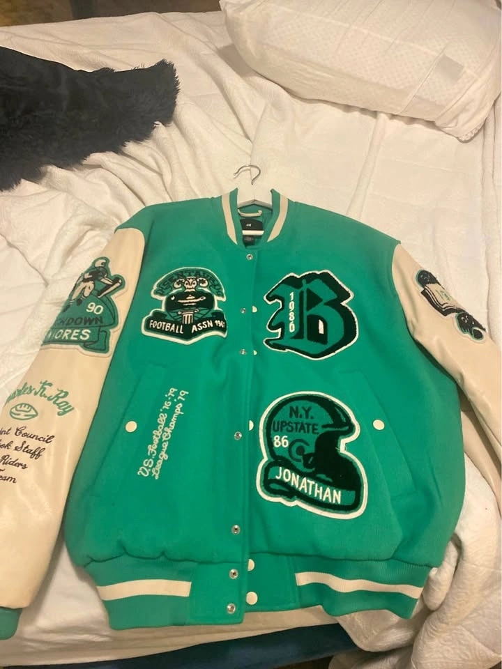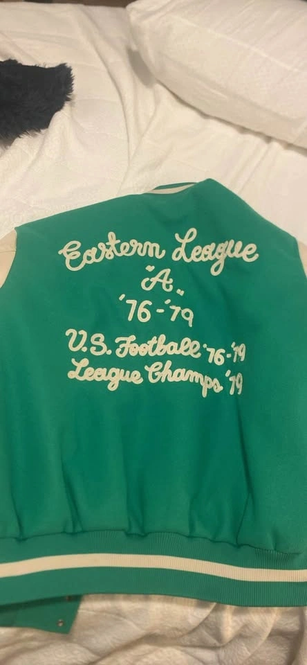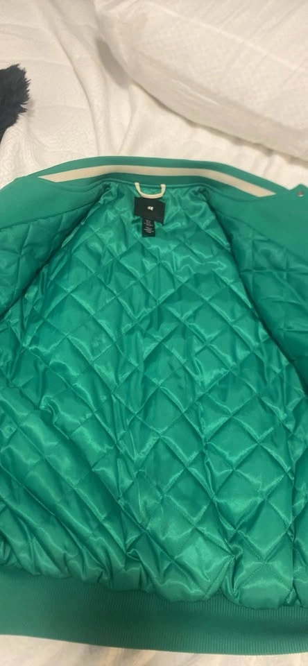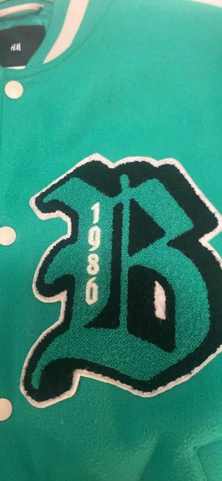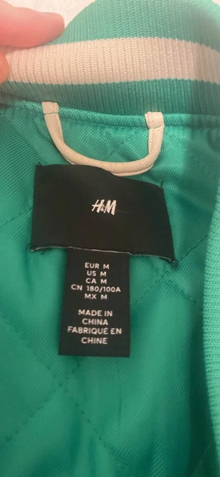 H and M vintage football letterman jacket, worn/tried on once and was too big. good quality and keeps you warm. Now sold out and not returning to website.