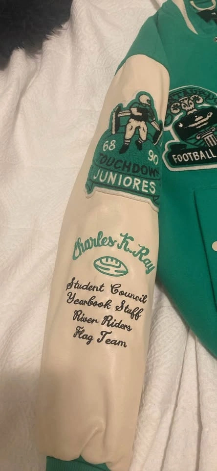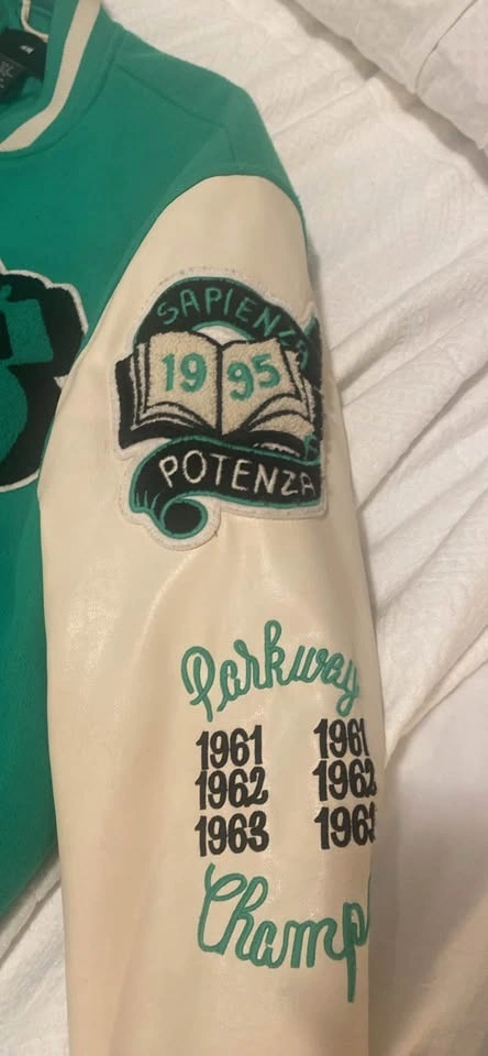 H and M vintage football letterman jacket, worn/tried on once and was too big. good quality and keeps you warm. Now sold out and not returning to website.