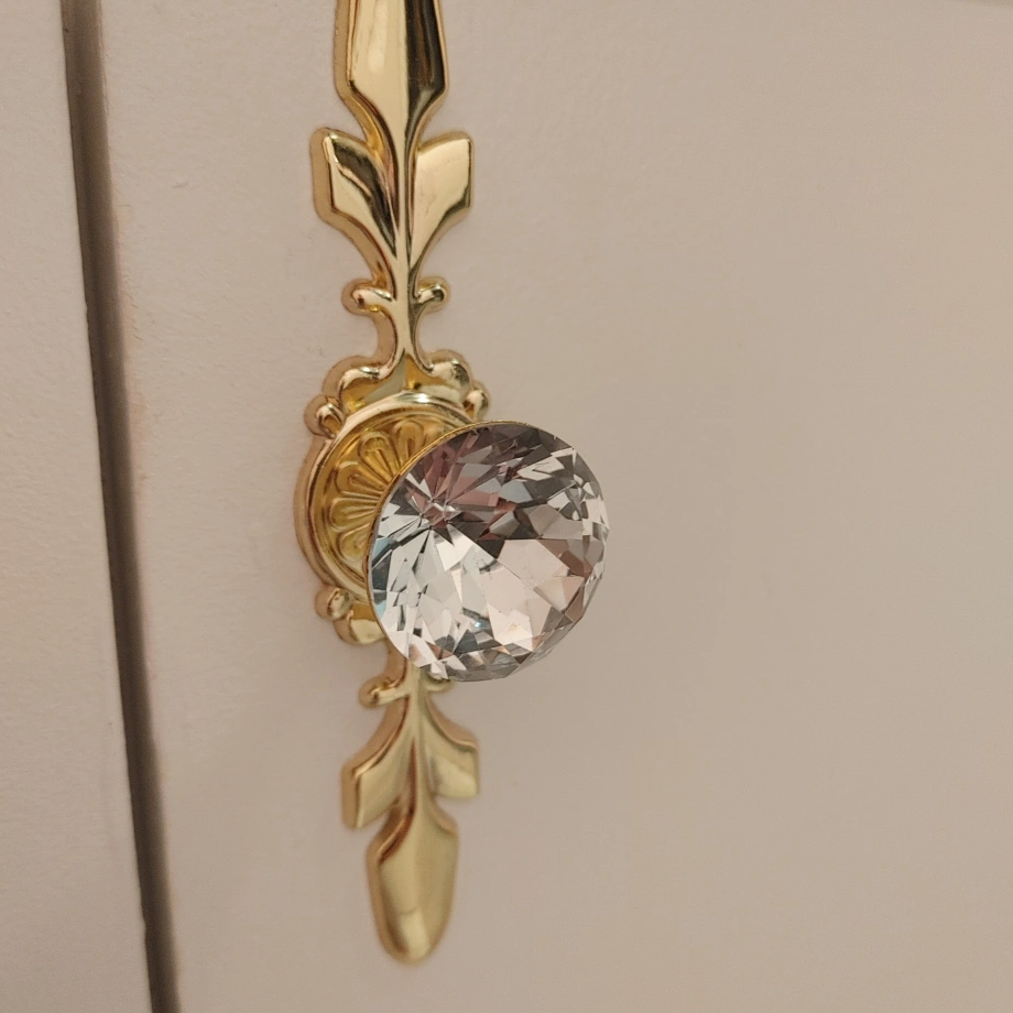 Add a touch of elegance to your cabinets with this beautiful crystal and gold knob! It's in great condition and will instantly upgrade your furniture