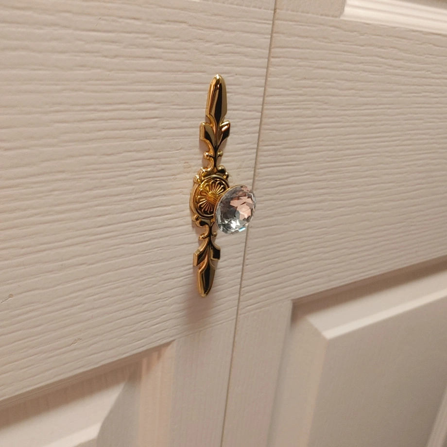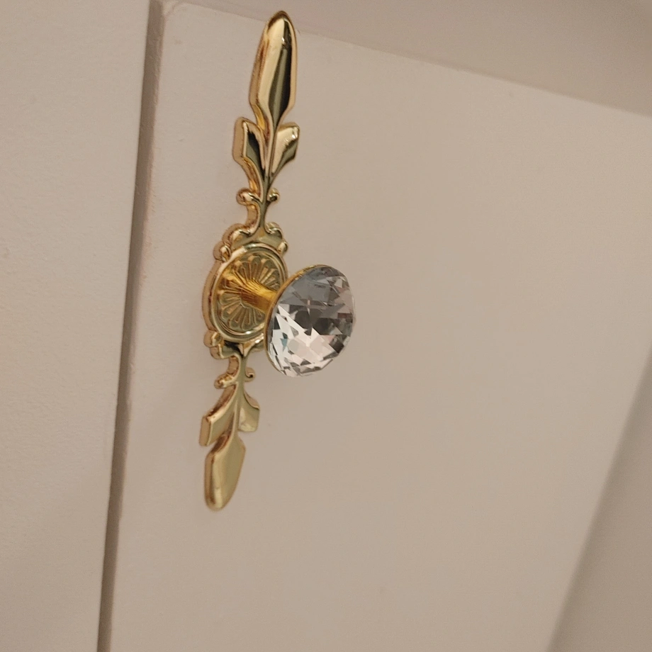Add a touch of elegance to your cabinets with this beautiful crystal and gold knob! It's in great condition and will instantly upgrade your furniture