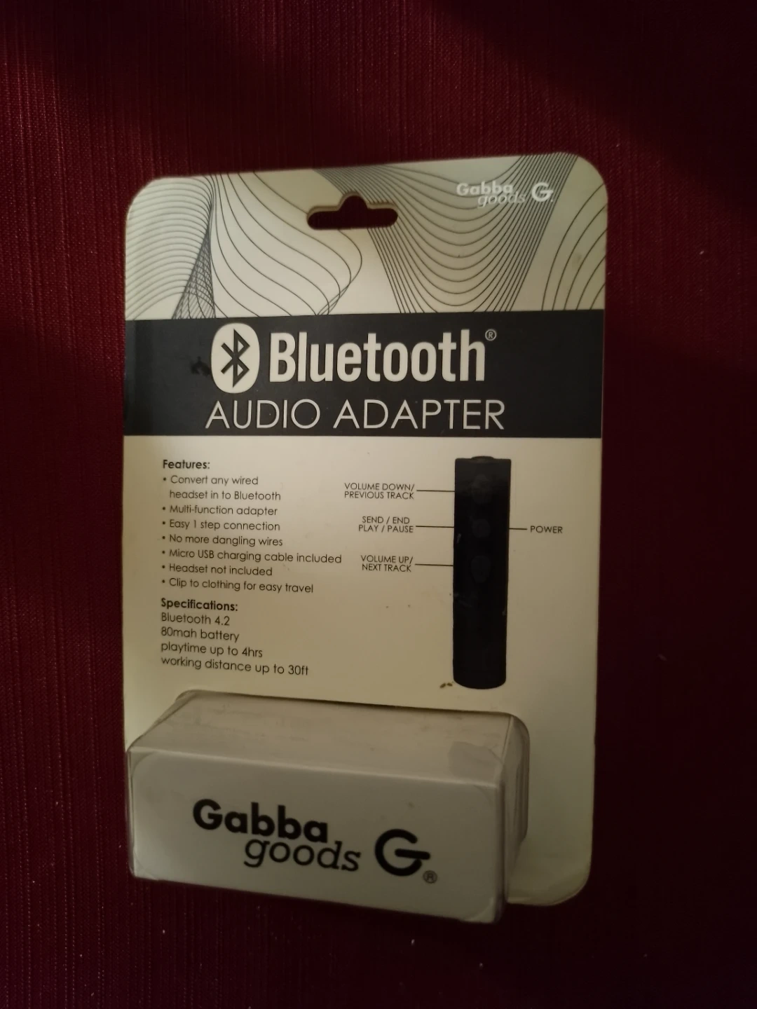 Selling a brand new Gabba Goods Bluetooth Audio Adapter! It's still in its original packaging.