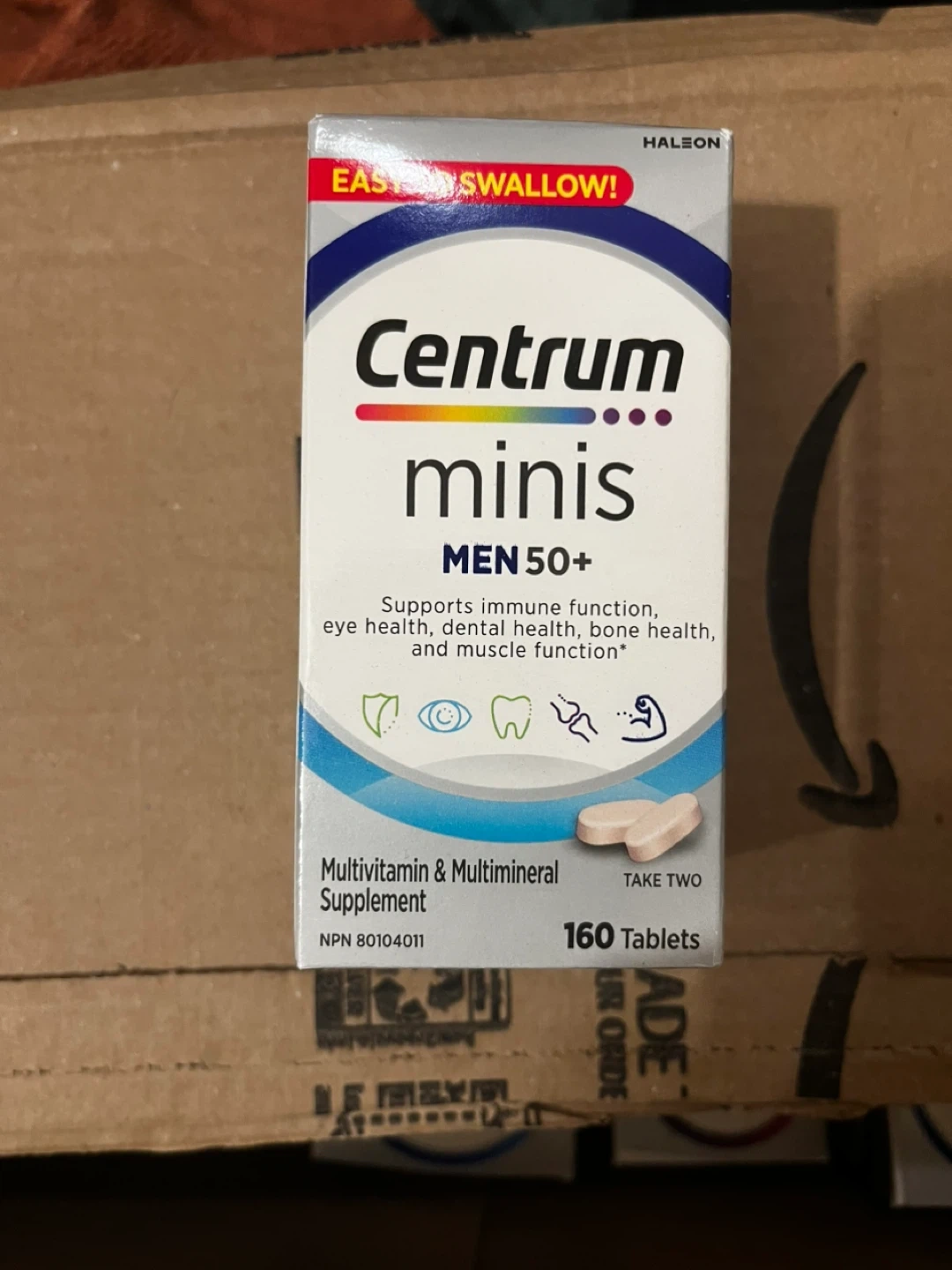 I'm selling Centrum Minis Men 50+ multivitamin tablets. This contains 160 tablets and supports immune function, eye health, dental health, bone health, and muscle function