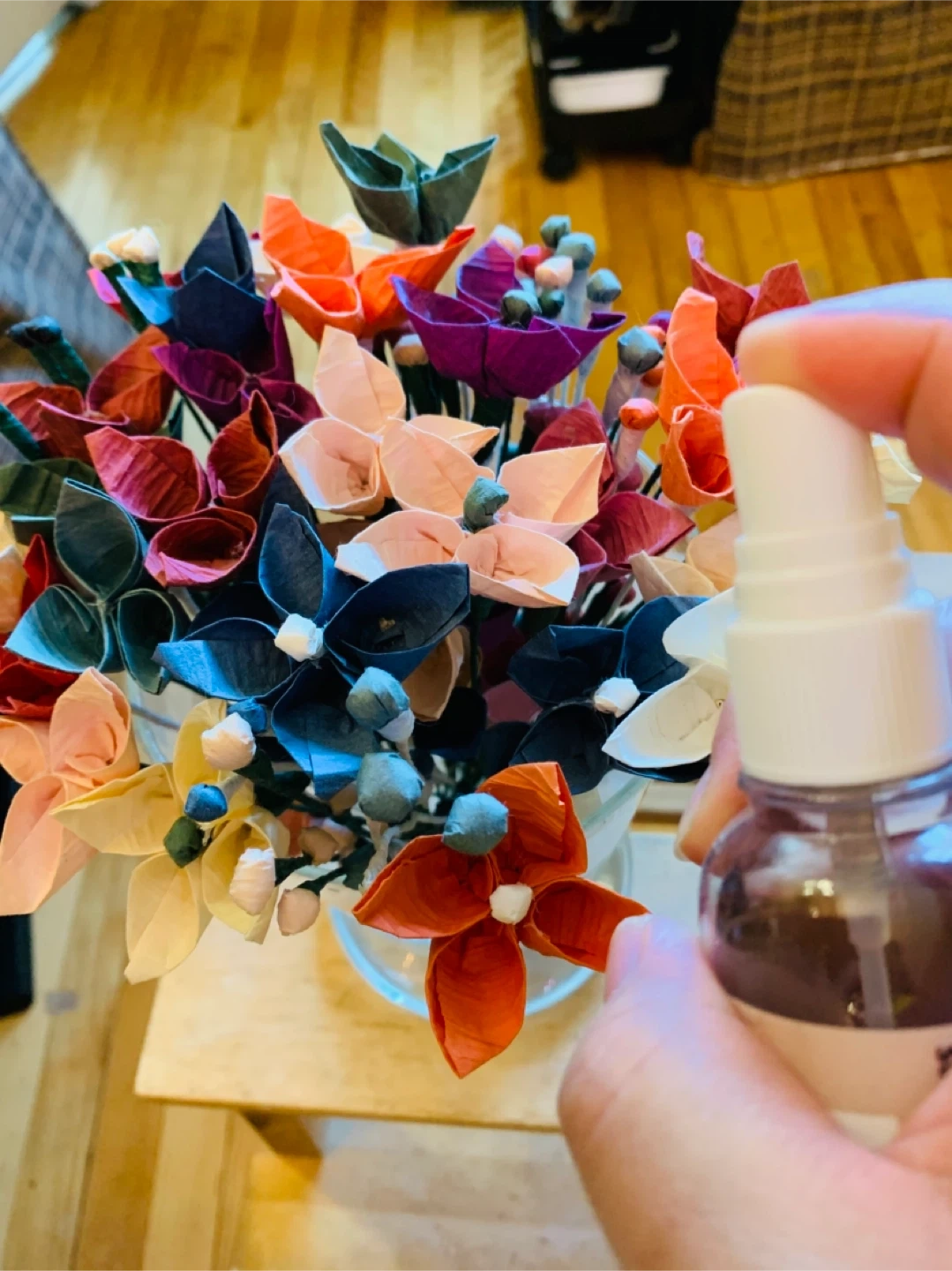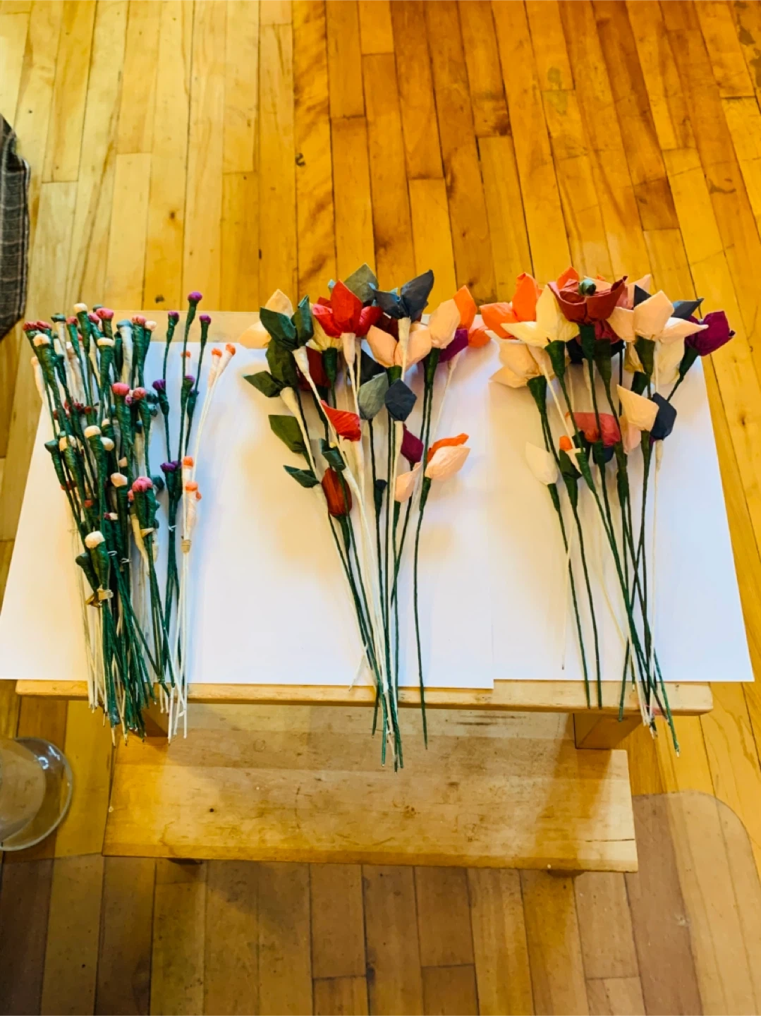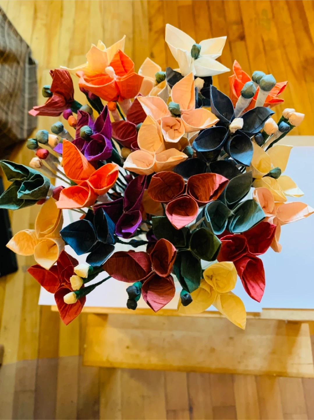 NEW ONE-OF-A-KIND Handcrafted flower petals and buds using craft paper. Twistable / bendable stems. Makes a UNIQUE room decor. Spray with your favourite room freshener or drop a couple of squirts of essential oil. VASE NOT INCLUDED. Smoke free home. $10 CAD FIRM for the entire bunch.