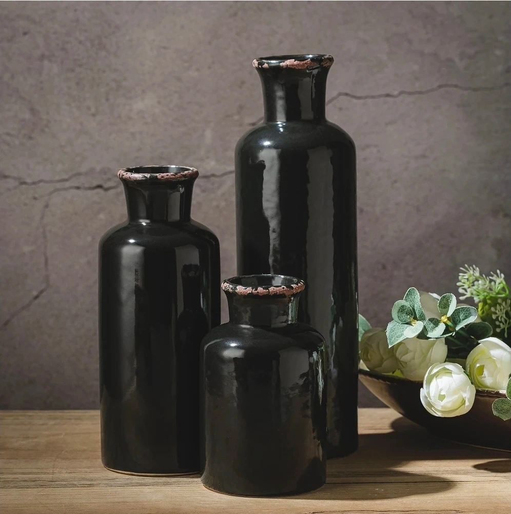 🥕Selling a set of black decorative vases. They would look great as a centerpiece or on a shelf! Perfect for adding a touch of elegance to any room. Small medium and large. Three different sizes