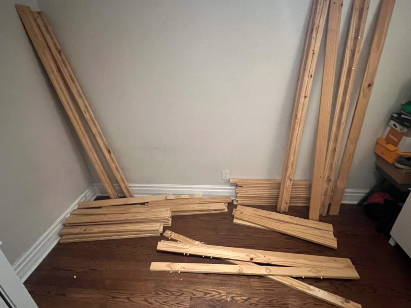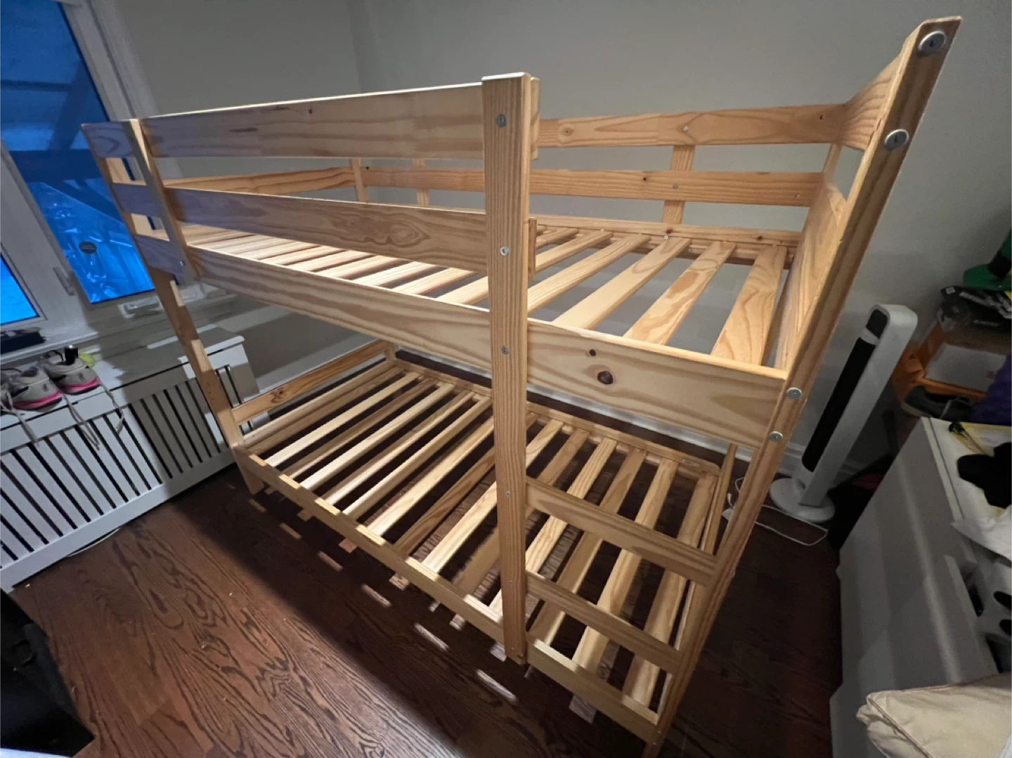 Selling an IKEA bunk bed frame in pine. This is a twin size bed frame. It's a great space-saving solution for kids' rooms or smaller spaces. The frame is in good condition and ready for a new home!