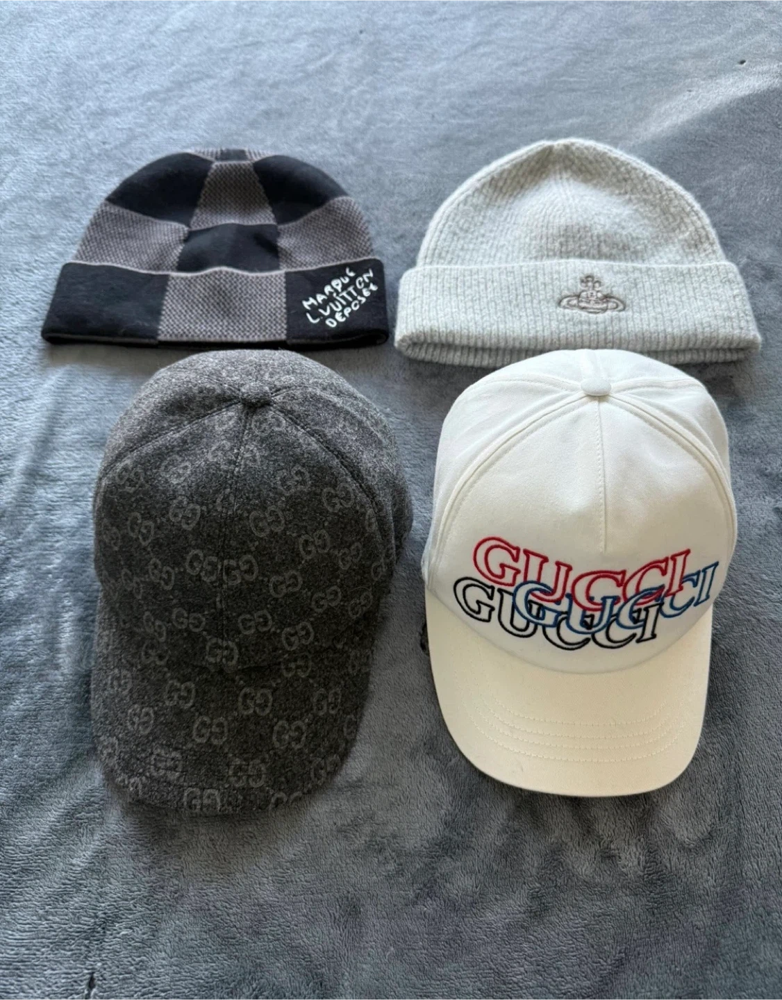 Selling a collection of stylish hats! There's a Gucci baseball cap, a Vivienne Westwood beanie, and more! They're all in great condition and ready to wear. Perfect for adding a touch of designer flair to your wardrobe