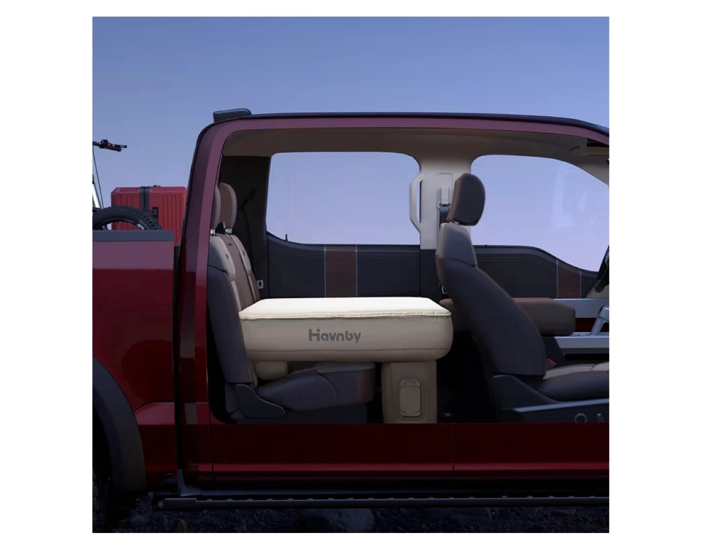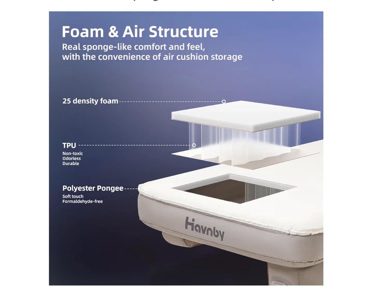 This Havnby TPU air foam camping bed is perfect for your next outdoor adventure! It's designed for use in the back seat of pickup trucks, making it a This is a Havnby TPU Air Foam Camping Bed, perfect for truck camping. It fits in the back seat of pickup trucks, and is a portable travel sleeping mattress.