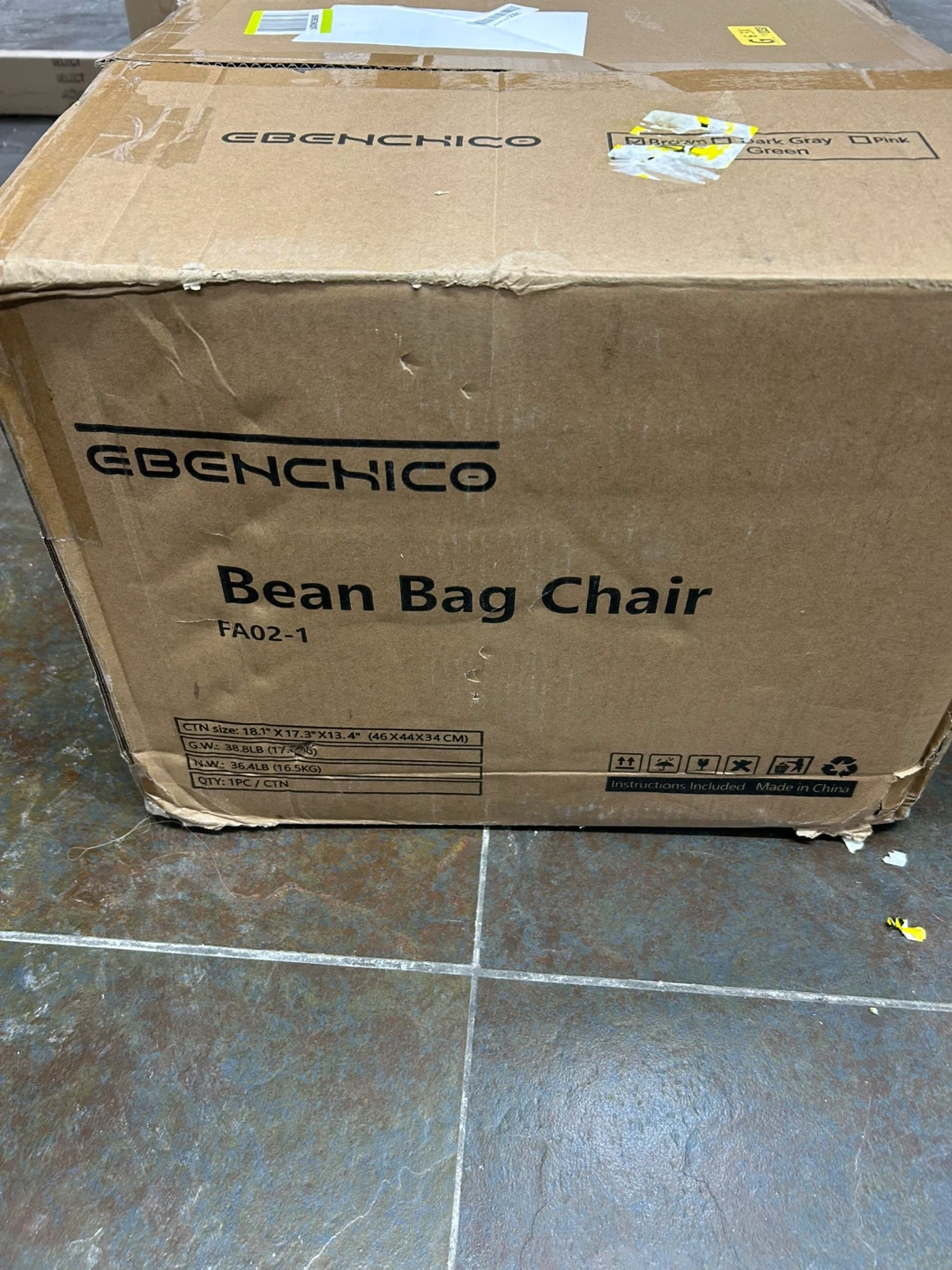 It's made of a soft brown corduroy material, perfect for lounging. The box is included!