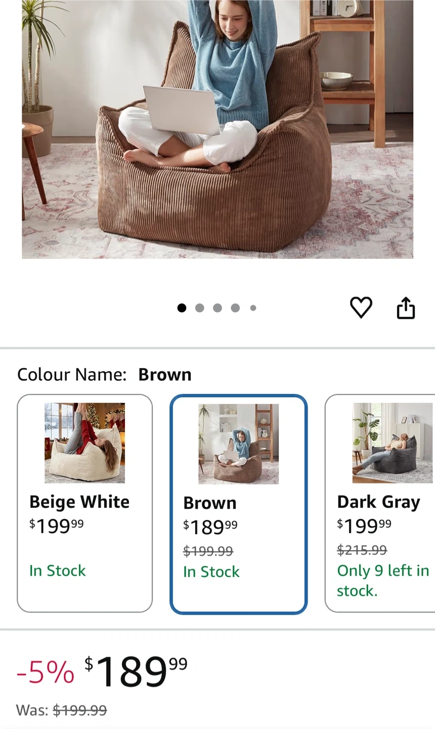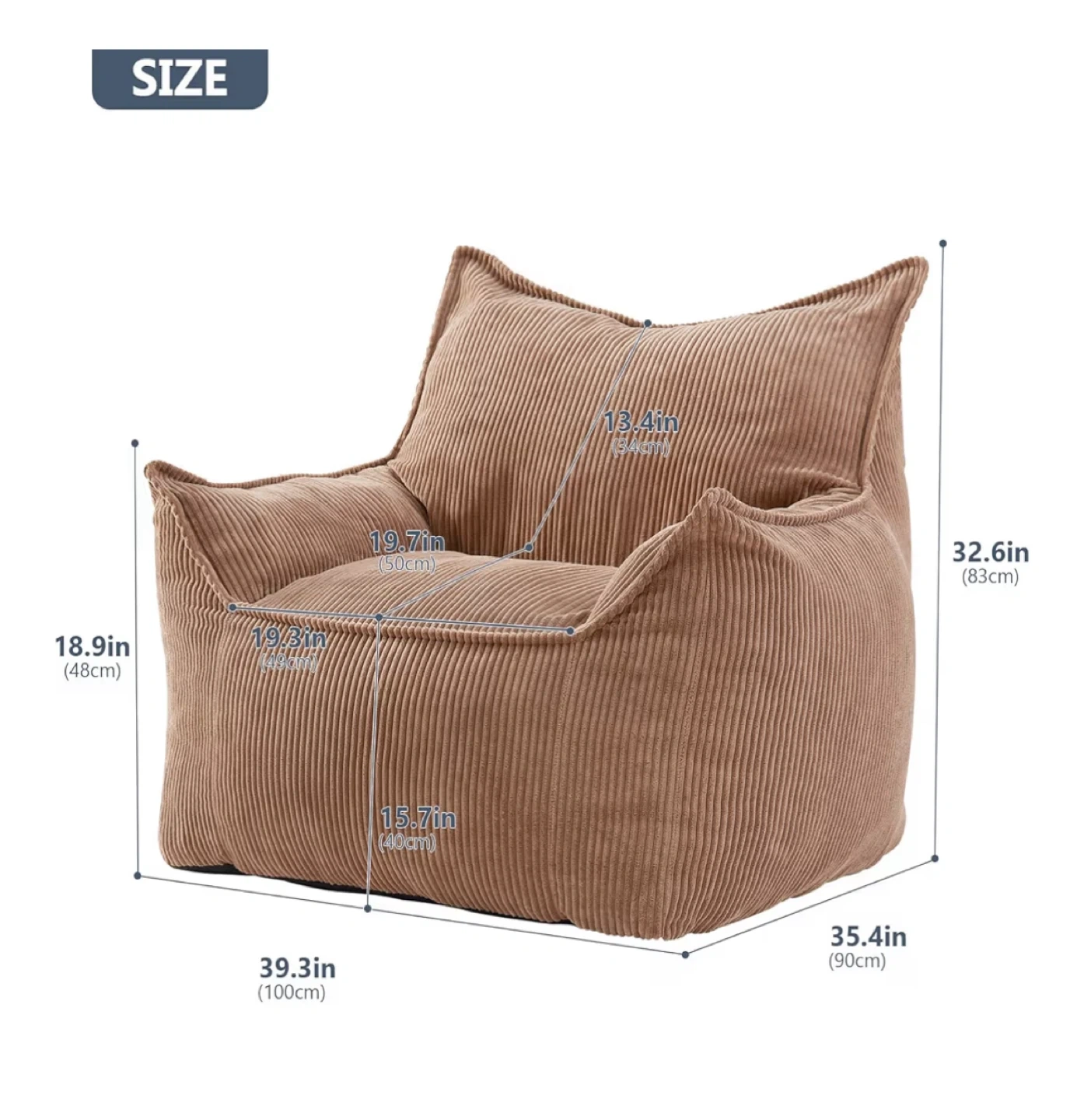 Ebenchico Bean Bag Chair - Brown Corduroy