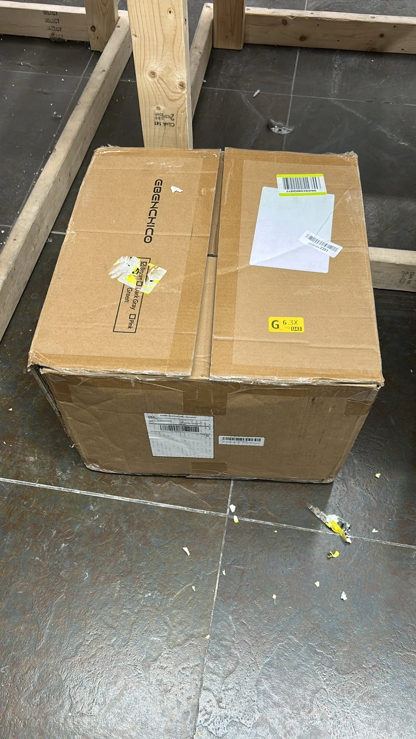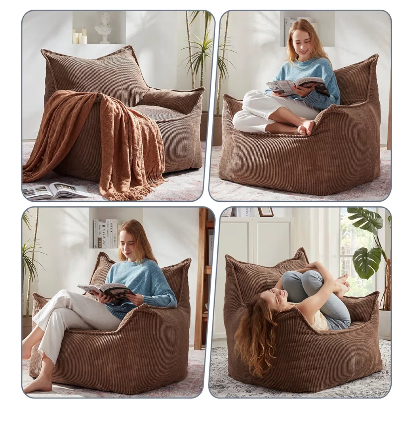 It's made of a soft brown corduroy material, perfect for lounging. The box is included!