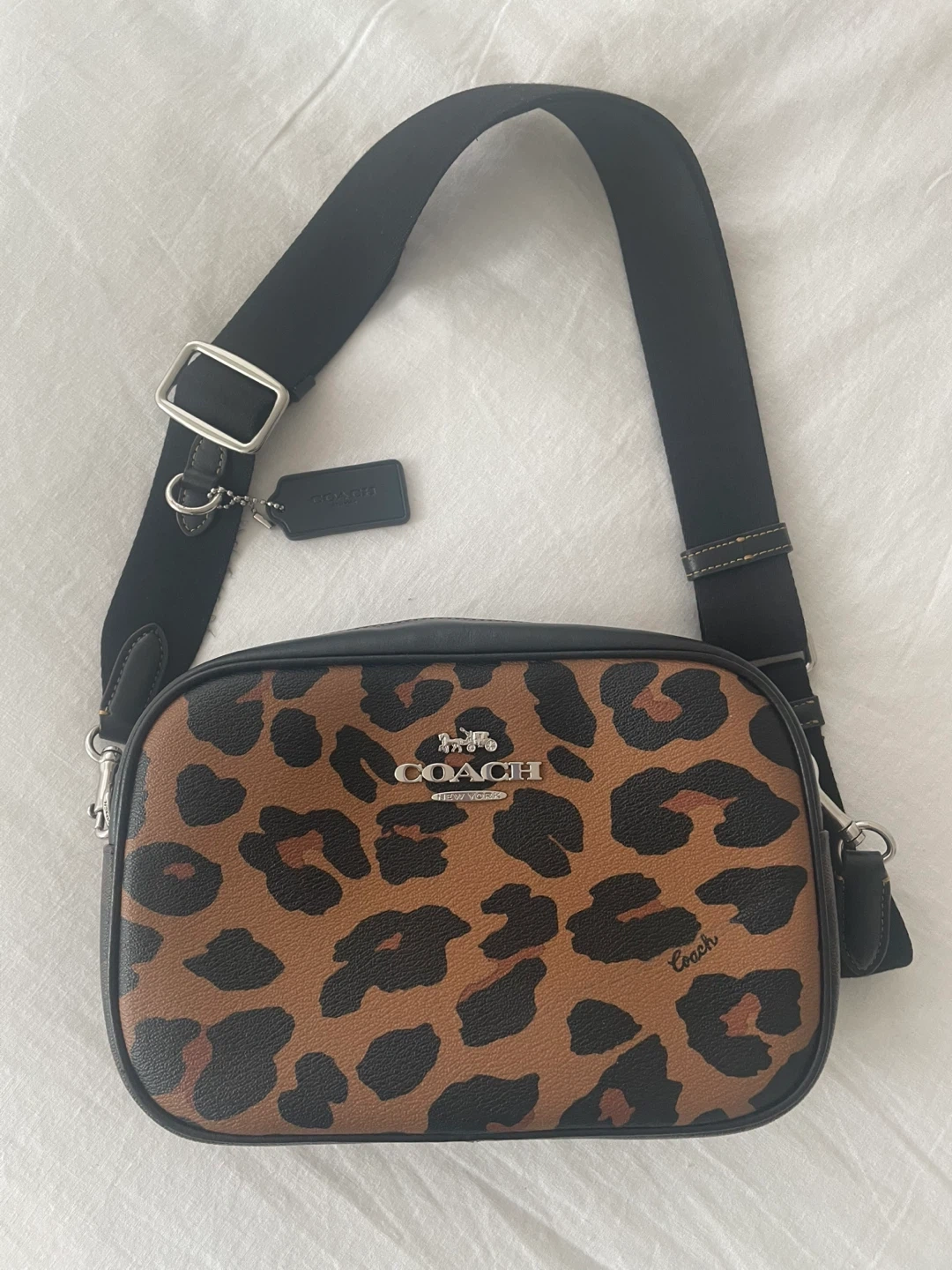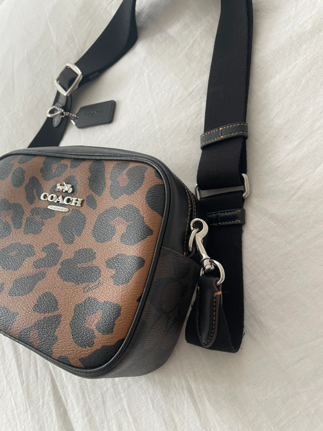 Selling a Coach camera bag in a stylish leopard print! It's in great condition and features a black strap. Perfect for carrying your essentials in style
