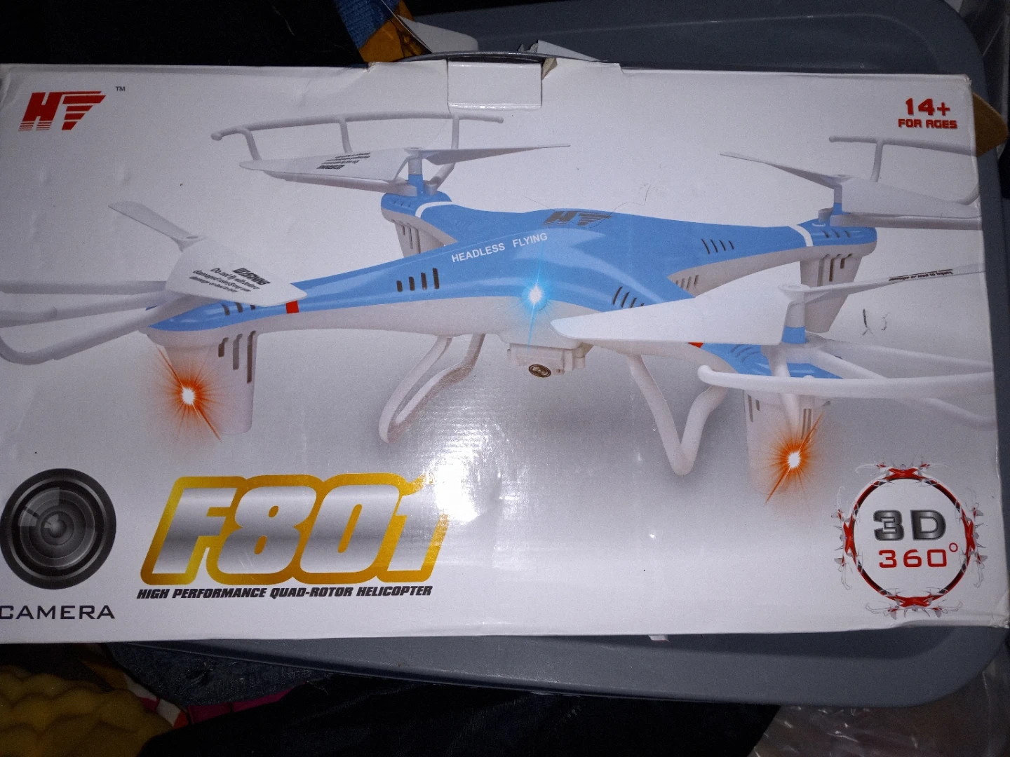 Selling a HF F801 high performance quad-rotor helicopter. It comes with the remote control and other components in the box. Great for ages 14+
