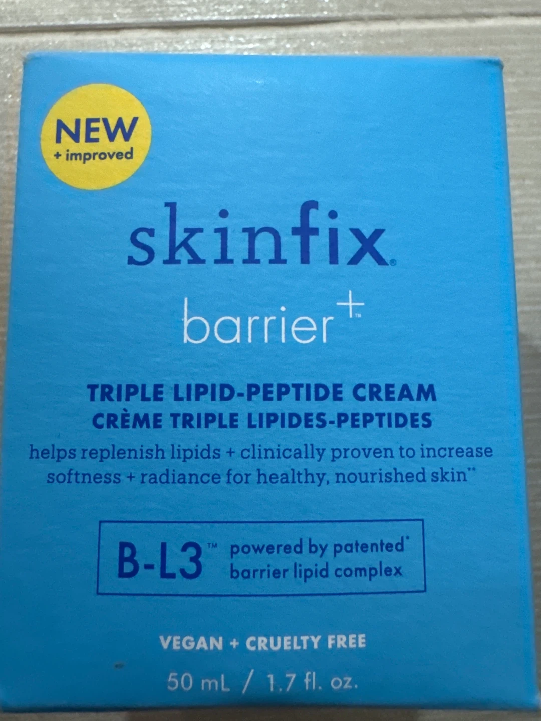 Selling a brand new Skinfix Barrier+ Triple Lipid-Peptide Cream. This cream helps replenish lipids and clinically proven to increase softness and radiance for healthy, nourished skin. It's also vegan and cruelty-free! Contains 50 mL / 1.7 fl oz