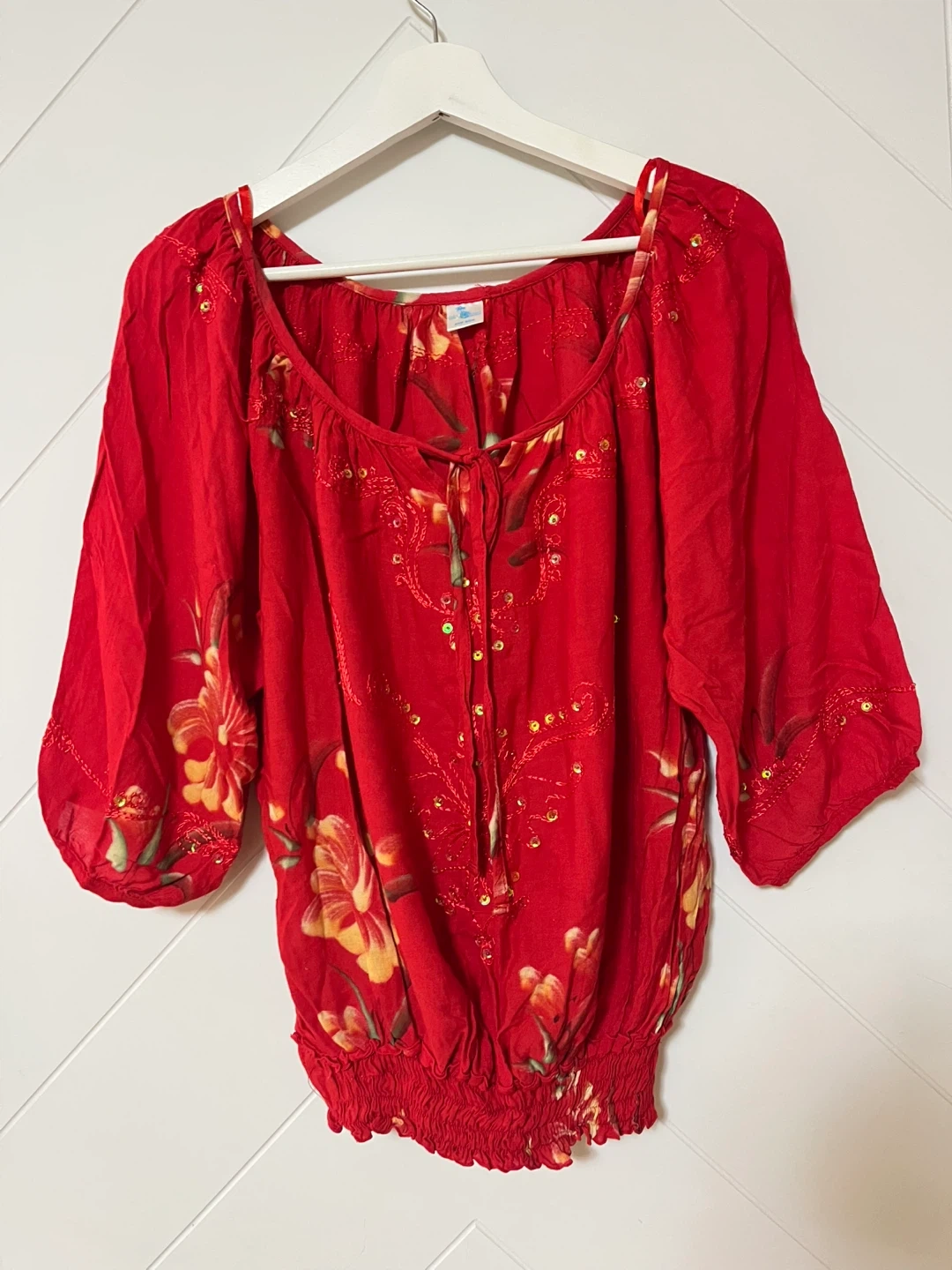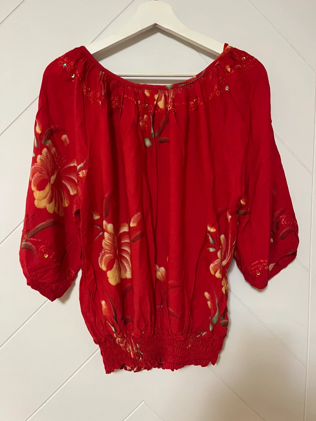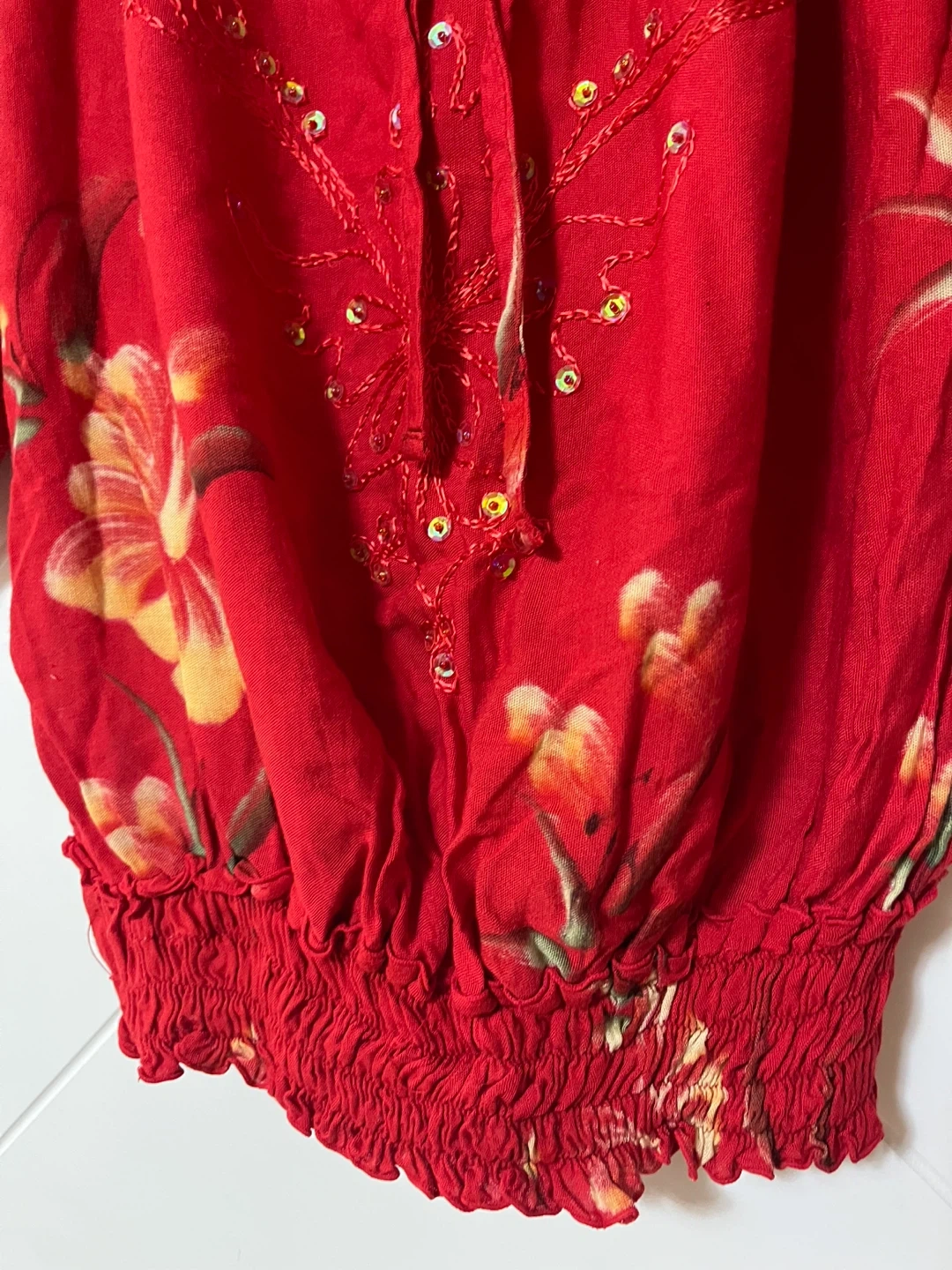 Red floral blouse from Isla Planet