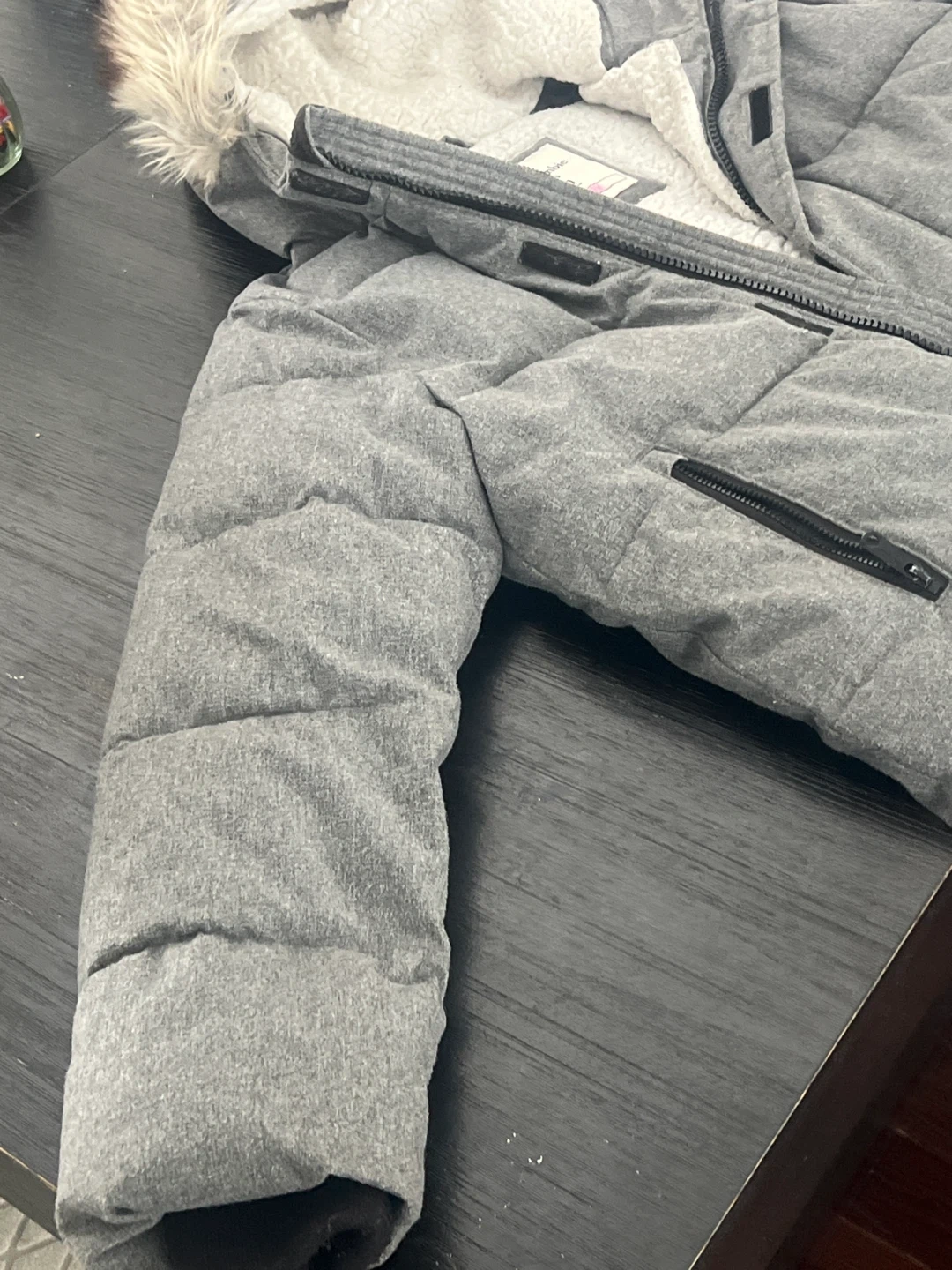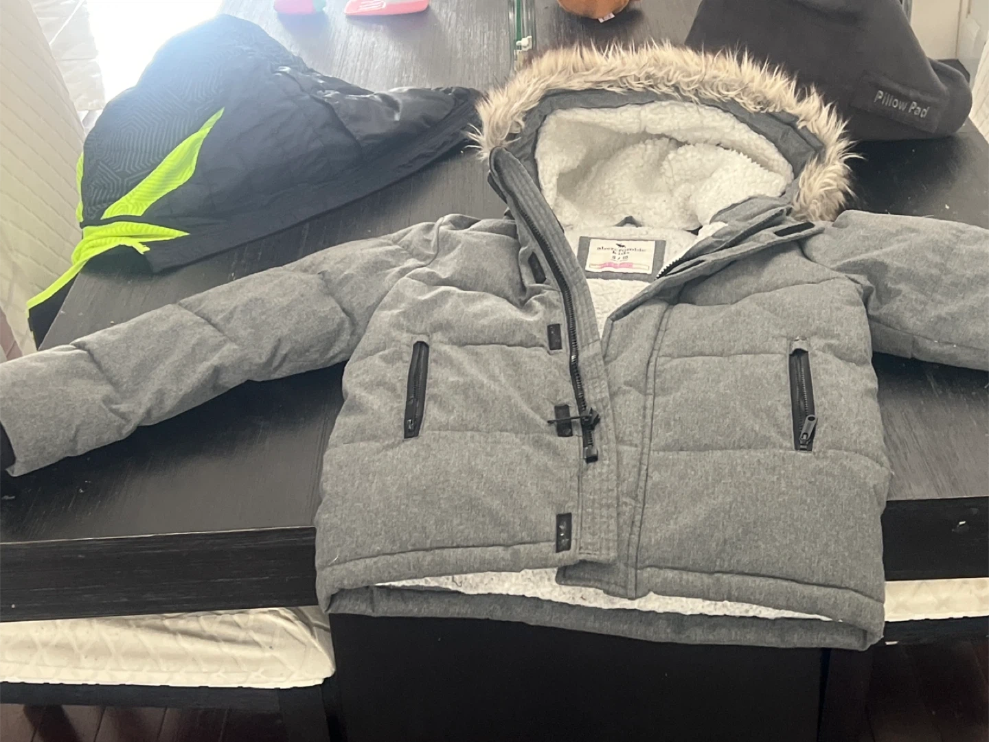 Selling an Abercrombie Kids puffer jacket in size 9/10! It's a stylish and warm jacket perfect for the colder months. The jacket features a cozy, fur-lined hood and a gray outer shell. It's in great condition and ready for a new owner!