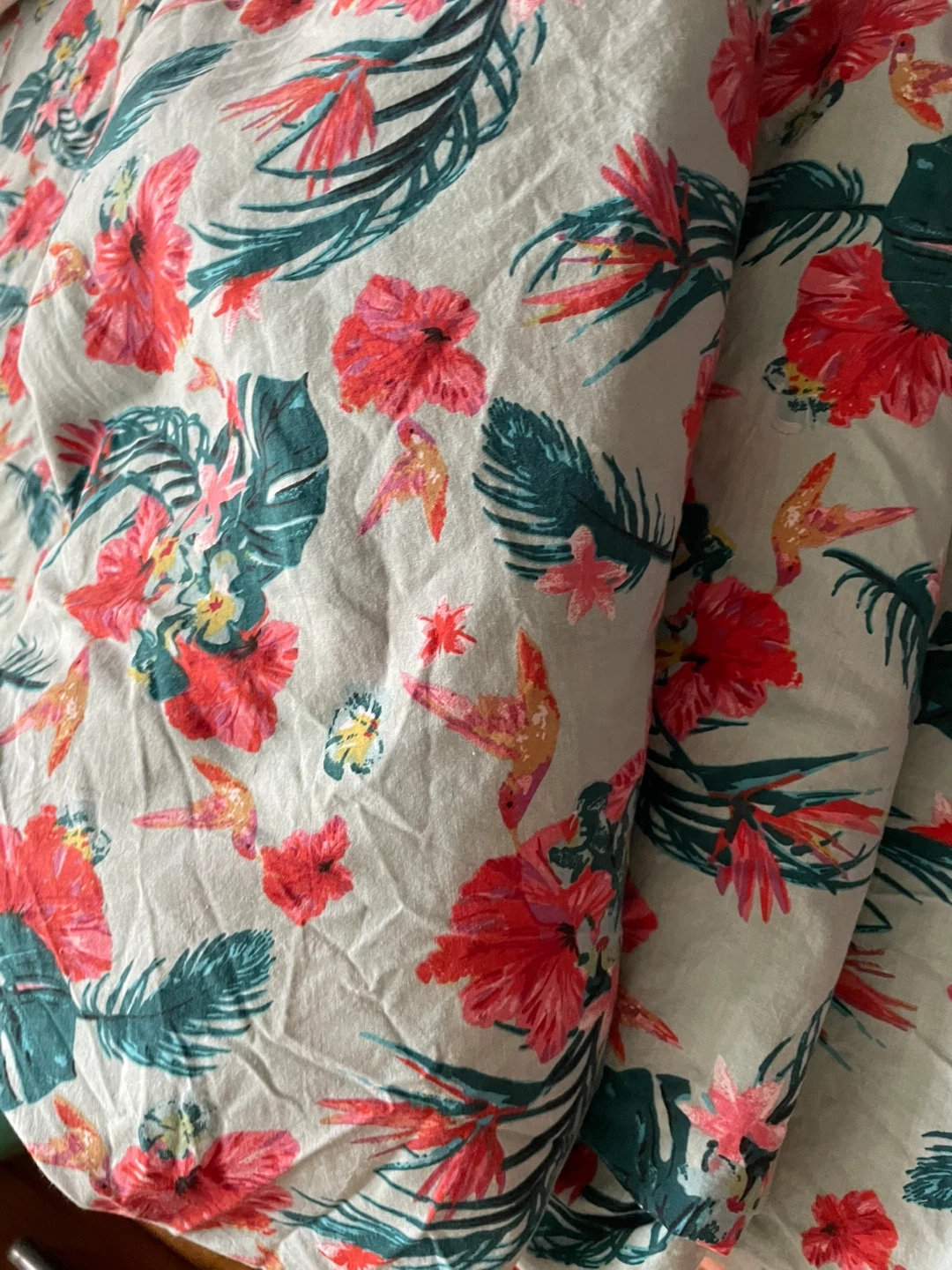 Selling (2) 100% cotton fittings bed sheets with a pretty floral print! It features vibrant red flowers and green leaves on a light background. Perfect for your next sewing project or craft!