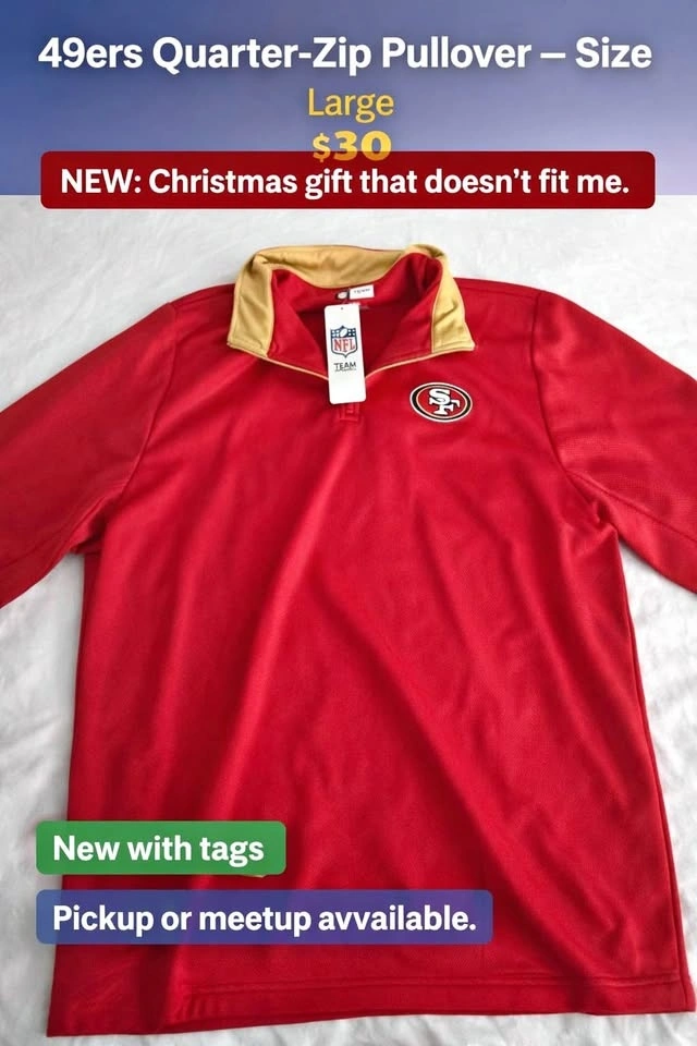 San Francisco 49ers Quarter-Zip Pullover – Size Large (New)