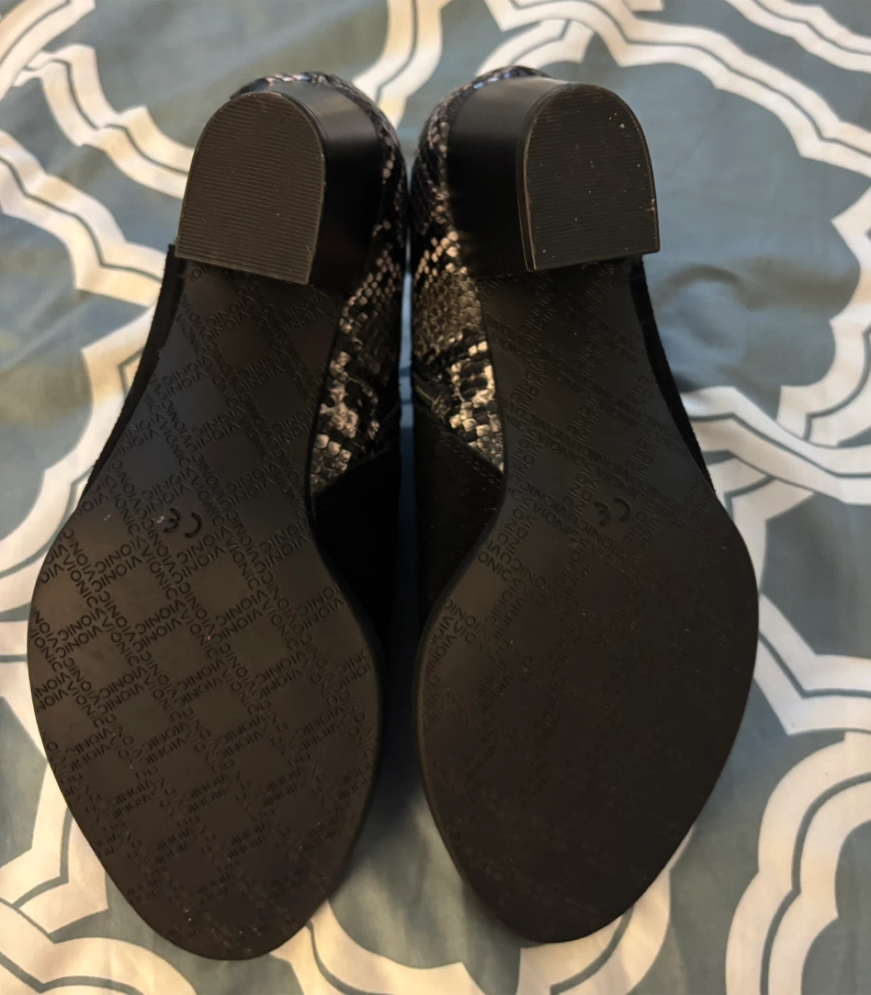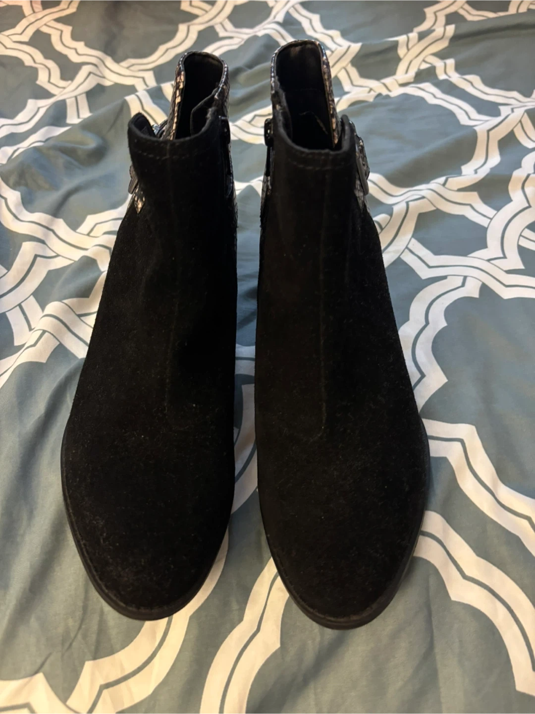 Selling a pair of Vionic ankle boots in black! They are a size 8. The boots feature a stylish snakeskin print on the side and a comfortable heel height. Perfect for adding a touch of chic to any outfit