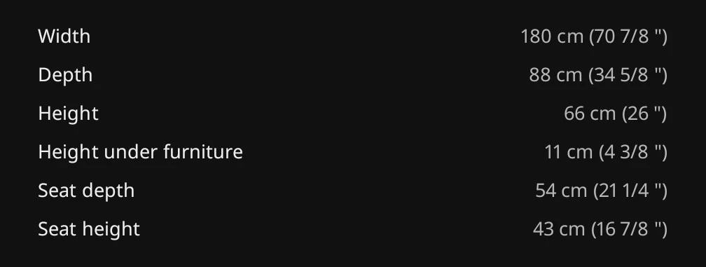 - Width: 180 cm (70 7/8 ")