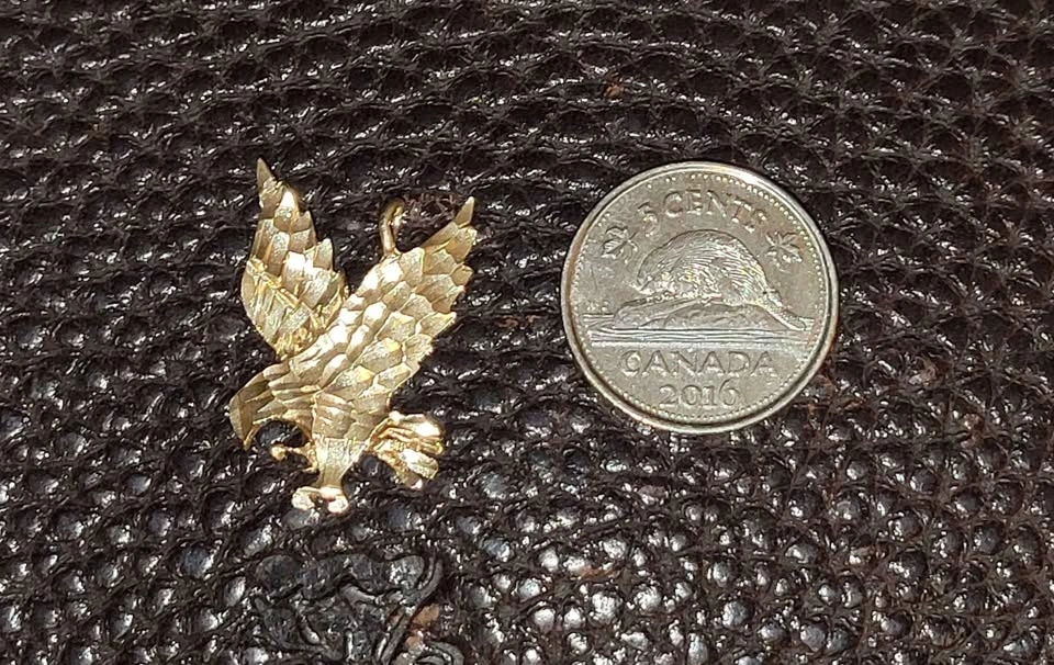 This 1.3 gram solid (stamped 10k) gold diamond cut eagle pendant is sure to impress!
