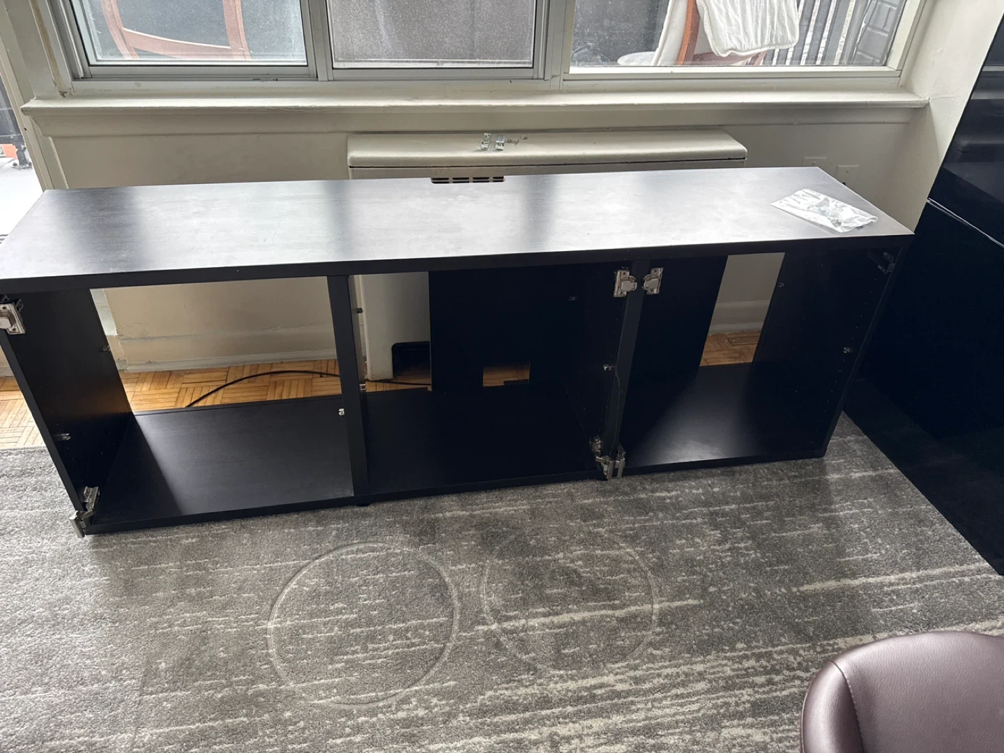 Selling an IKEA BESTA shelf unit with doors in a Kallviken dark gray doors.