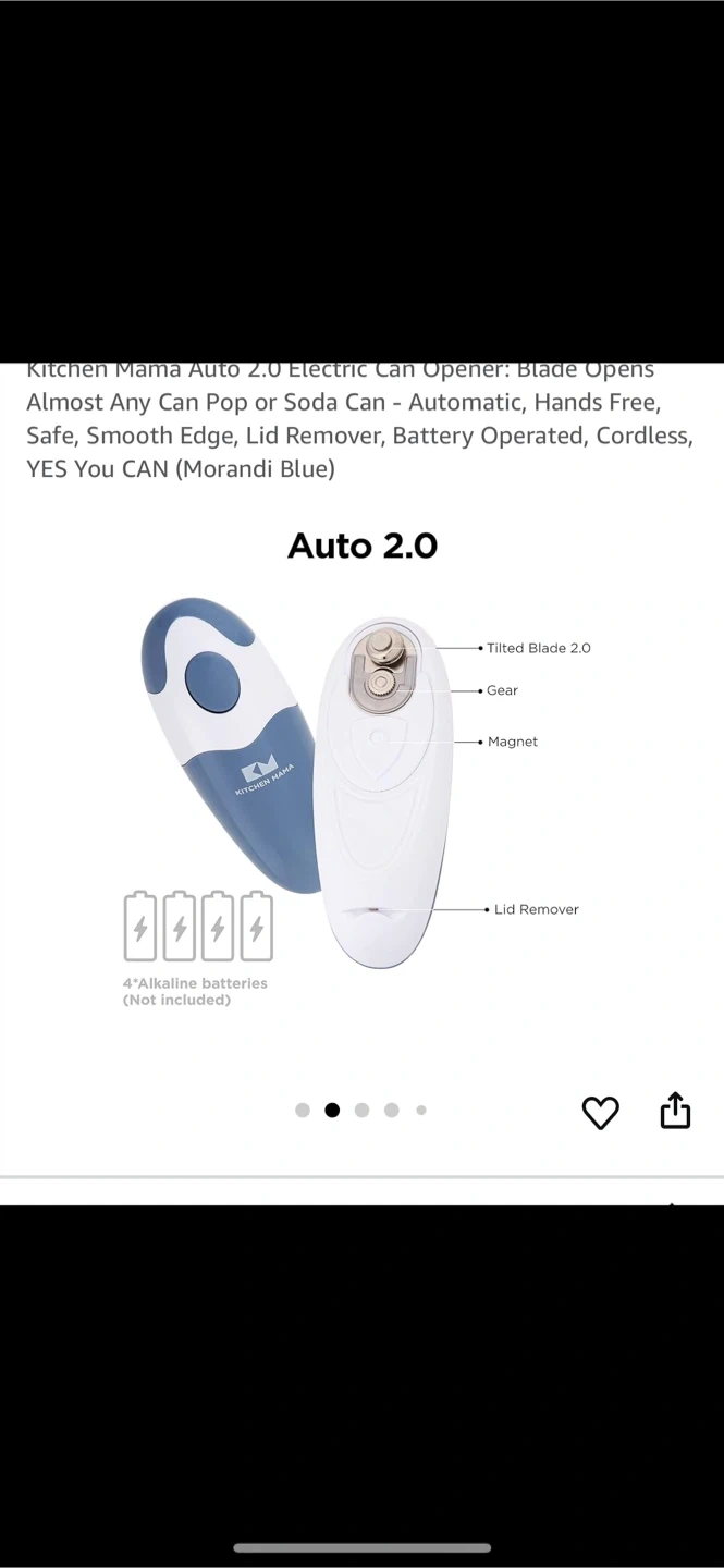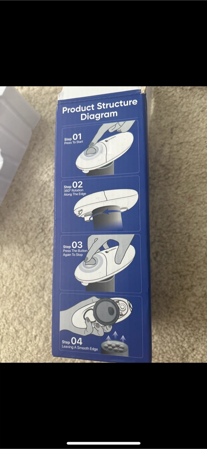 I'm selling a Korskr electric can opener in black! It's a hands-free operation, food safe, and battery powered. It leaves a smooth edge, so you don't have to worry about sharp edges. The box is included!