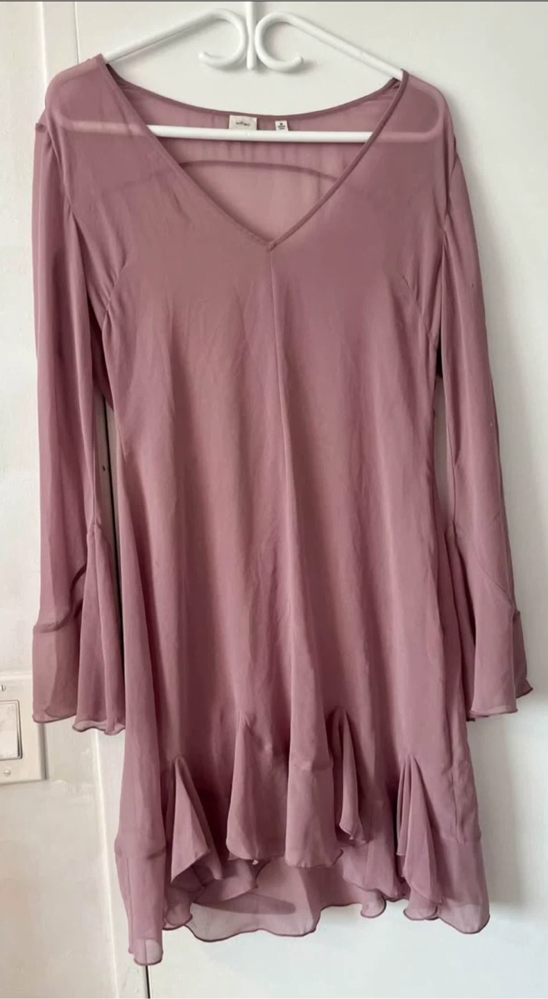 Selling a Wilfred dress in size medium. It's a lovely mauve colour with long bell sleeves and a ruffled hem. Perfect for a night out or a special occasion!
