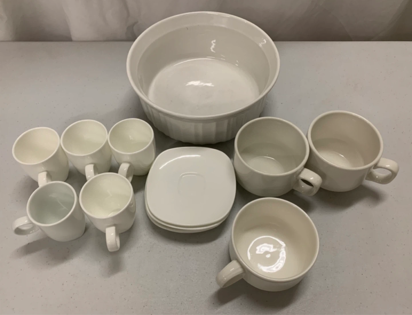 Selling a mixed bundle of high-quality white kitchenware. Perfect starter set for a student or apartment. Includes 14+ pieces.