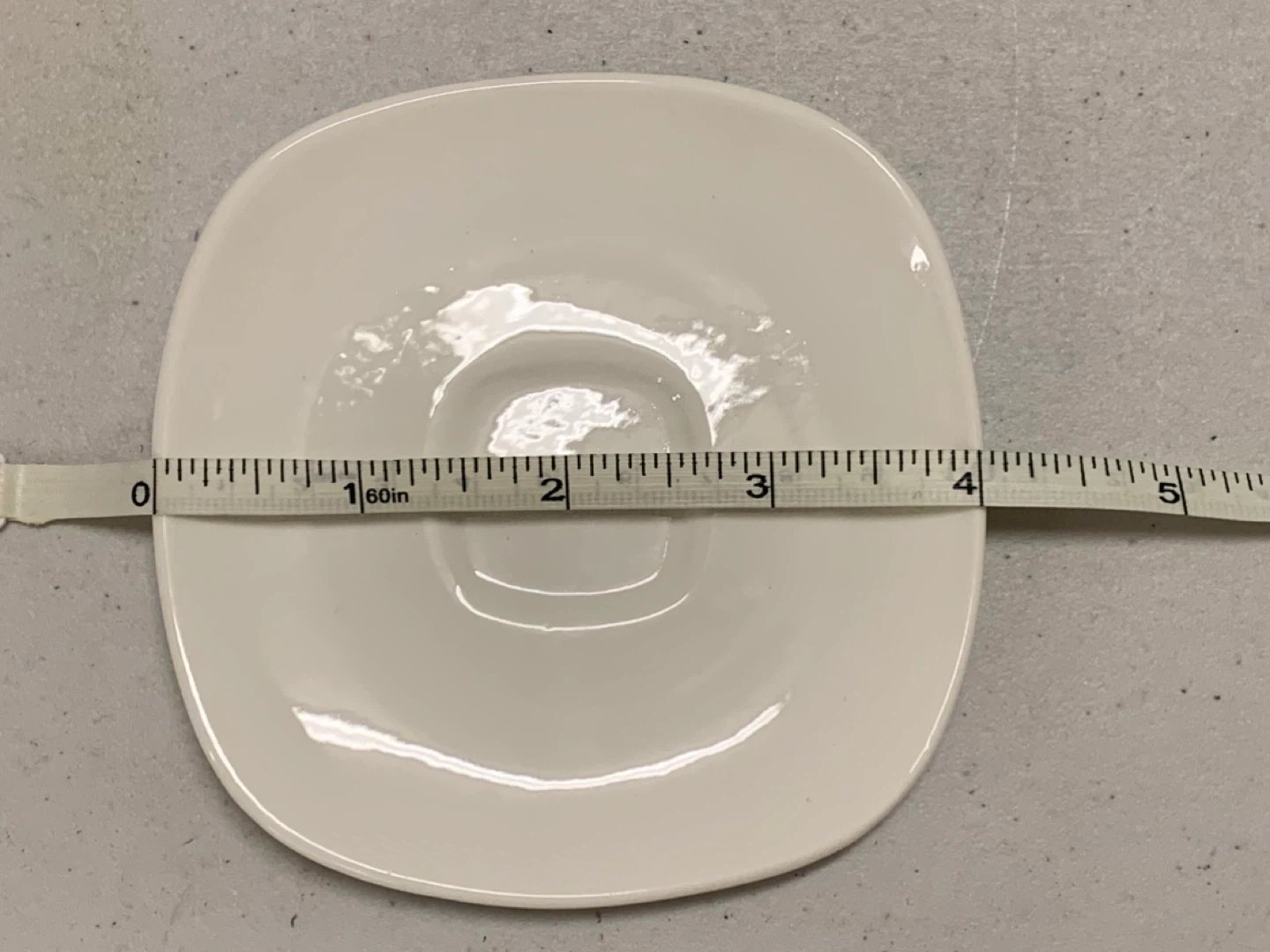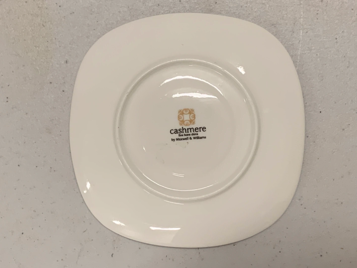 Maxwell & Williams: 4x Square saucers and matching espresso mugs (Fine Bone China). 1 Extra spare mug included (commercial grade, looks identical)